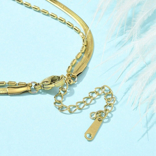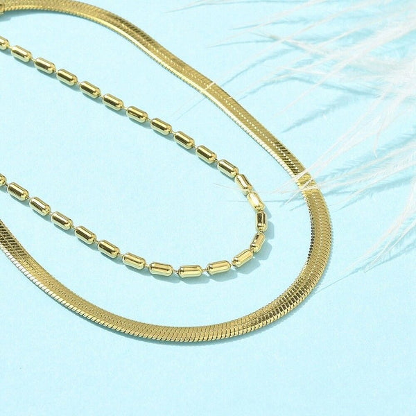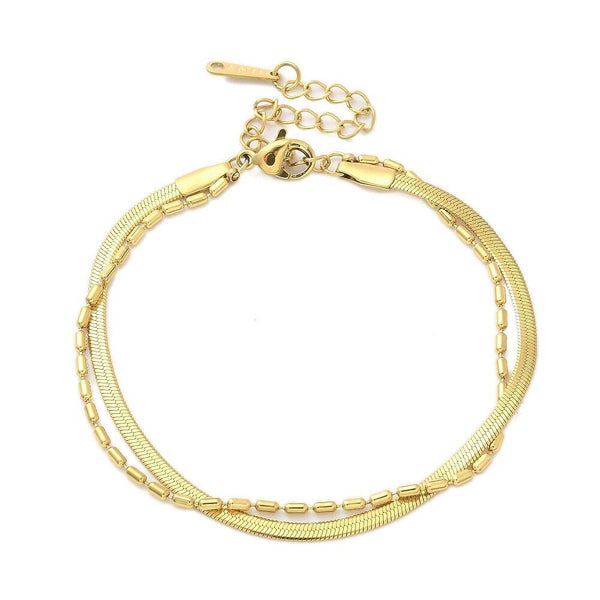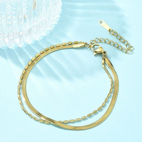 14K Gold Plated Stainless Steel Herringbone Snake Bracelet Bead Adjustable T31