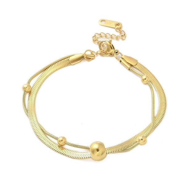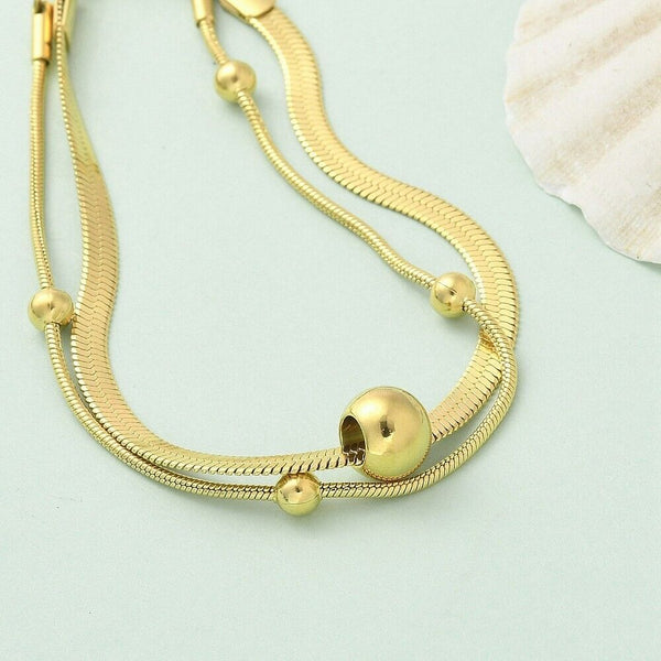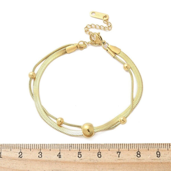 14K Gold Plated Stainless Steel Herringbone Snake Bracelet Bead Adjustable T34