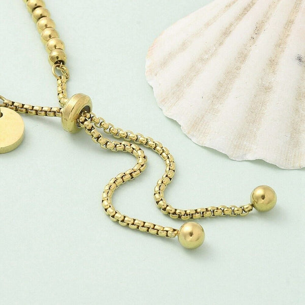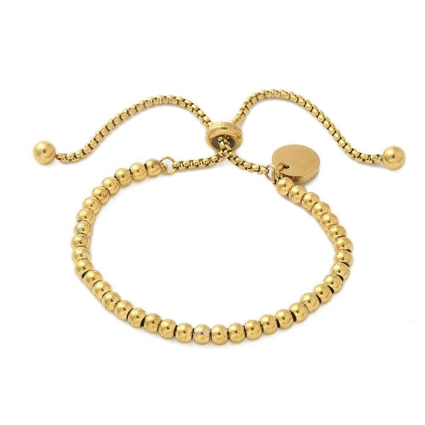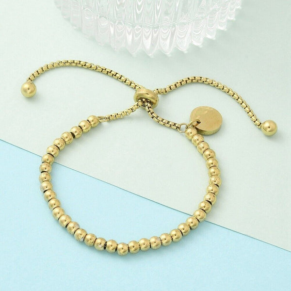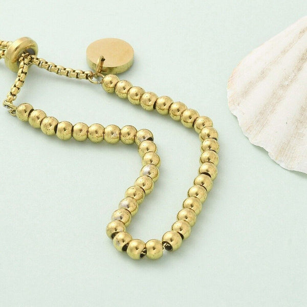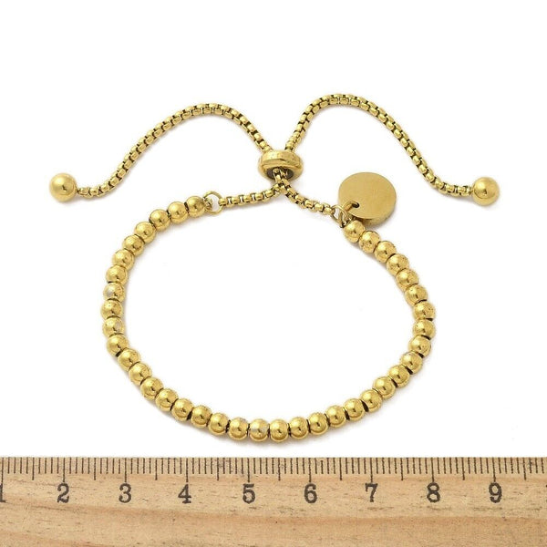 14K Gold Plated Stainless Steel Slider Bracelet Bead Beaded Adjustable T11