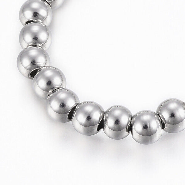 304 Stainless Steel 6MM Beaded Stretch Adjustable Bracelet Round Silver Z171