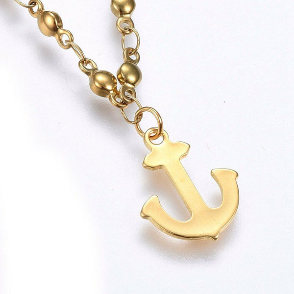 304 Stainless Steel Charm Bracelet Lobster Anchor Gold 8.2" 3mm A85