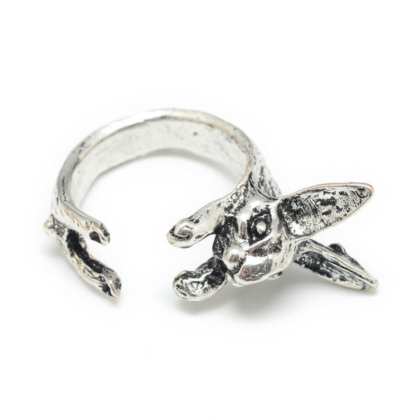 Alloy Cuff Finger Ring Rabbit Antique Silver Size 7 Adjustable 17mm P424