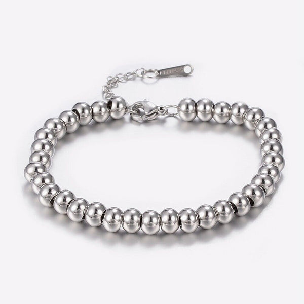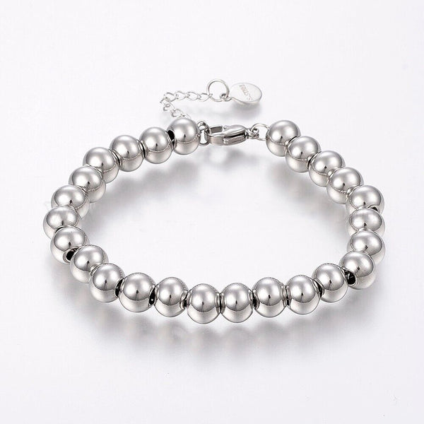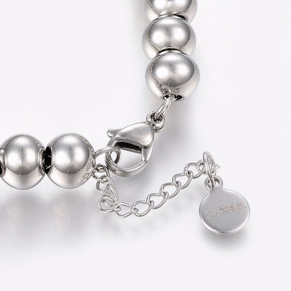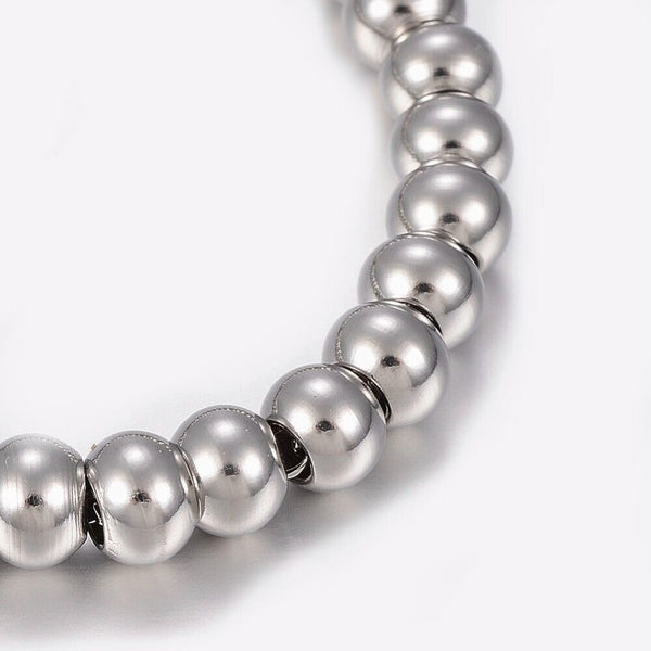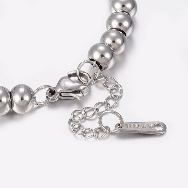 Tarnish Resistant 304 Stainless Steel Bracelets with 201 Stainless Round Beads, with Lobster Clasp, Stainless Steel Color