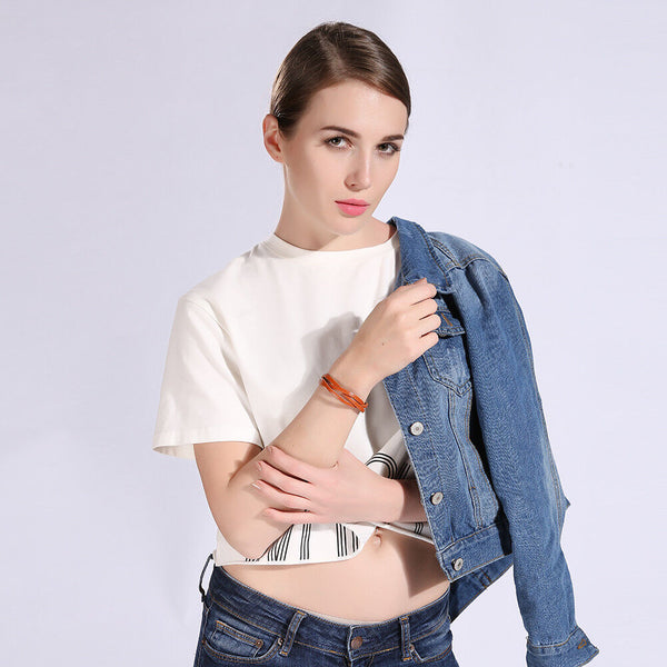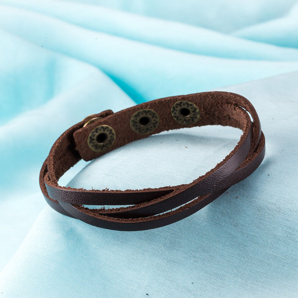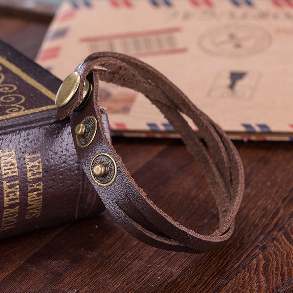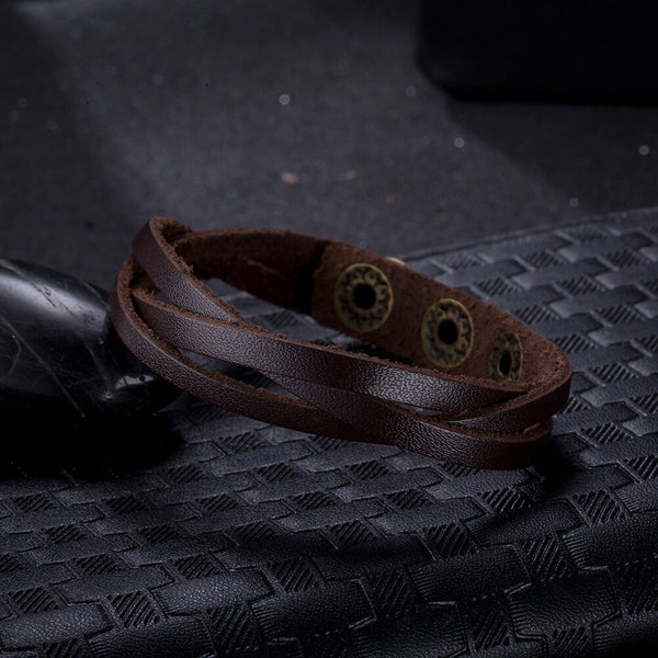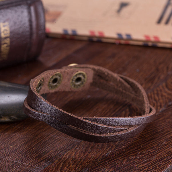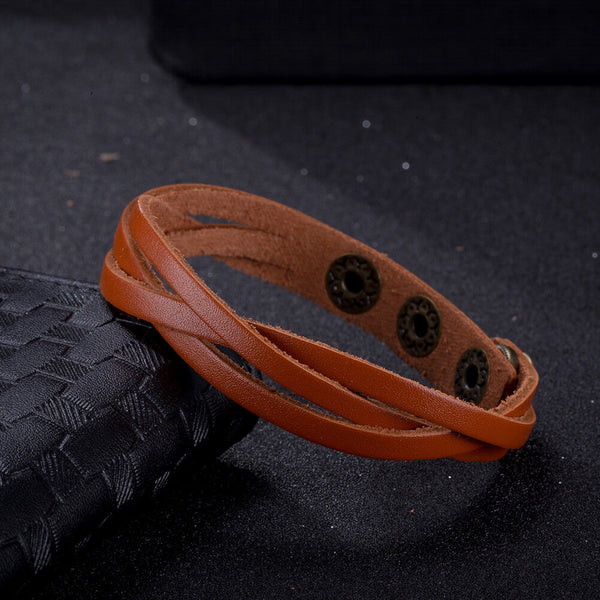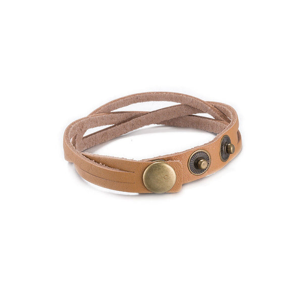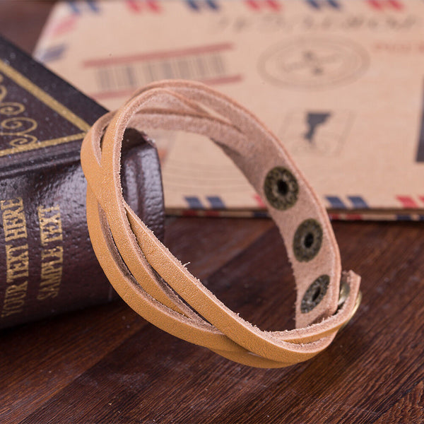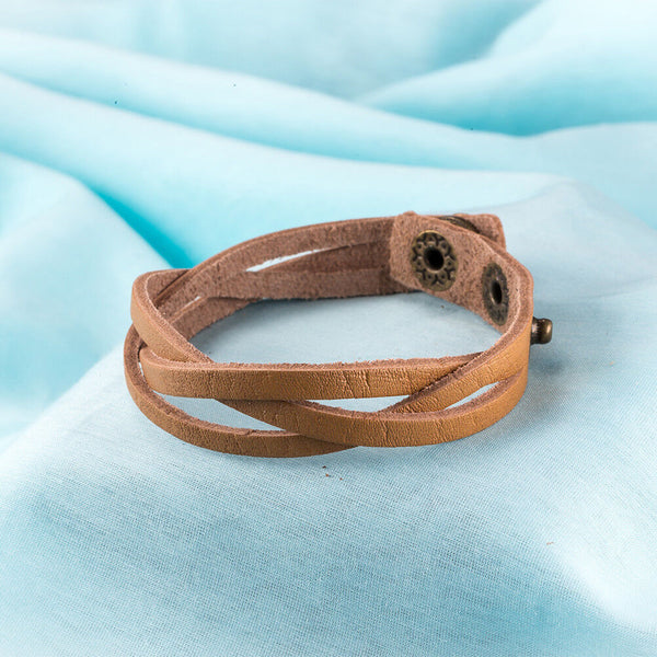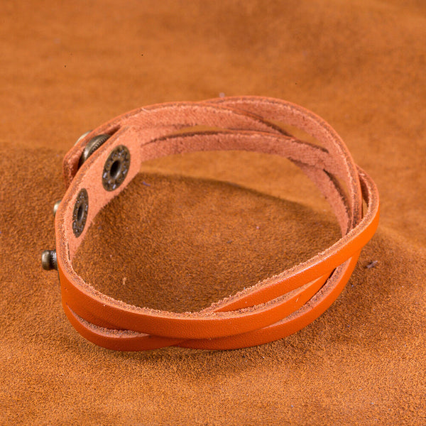 Leather Bracelet Beige Orange Brown 8.5 Inches 13MM Push button L466