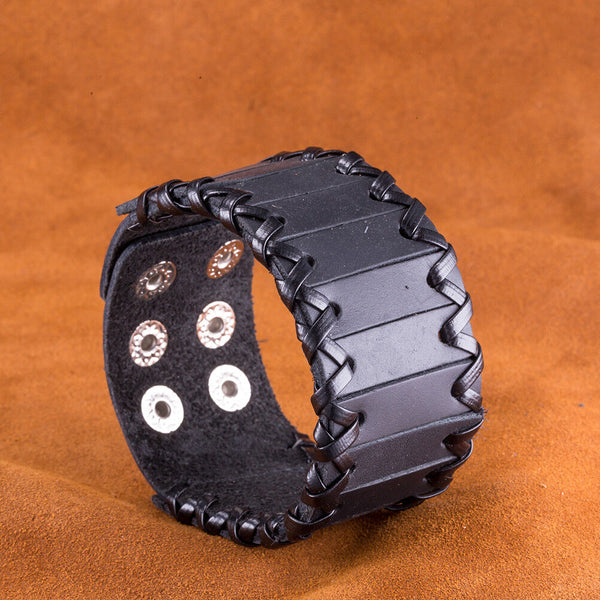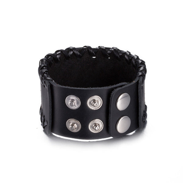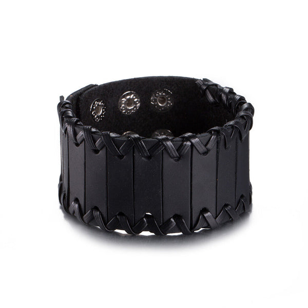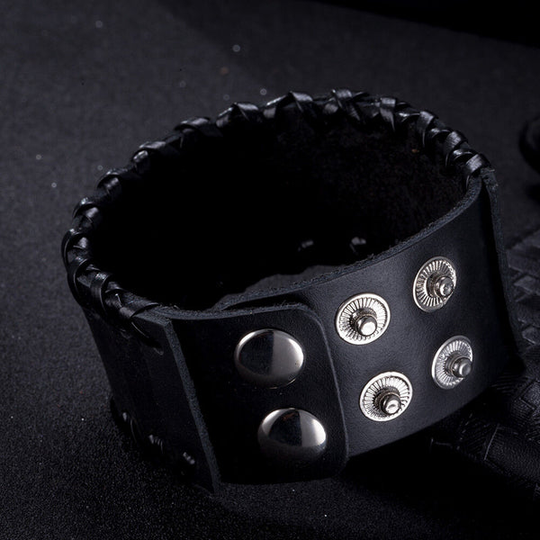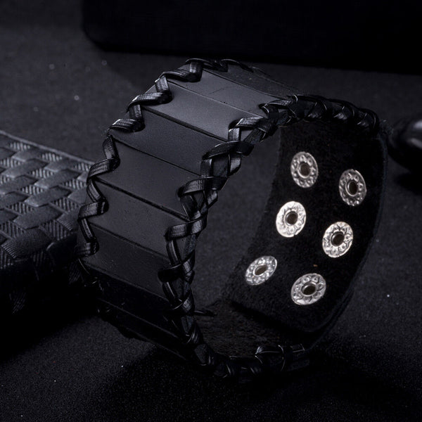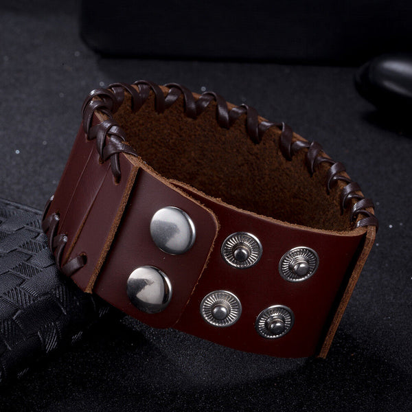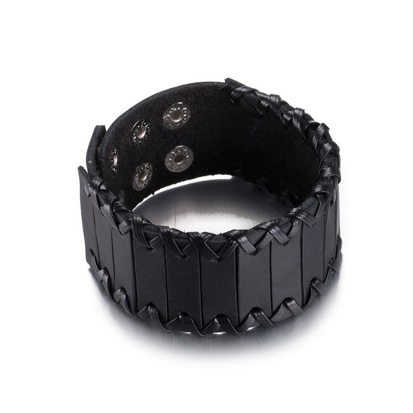 Leather Bracelet Black Brown 9.5 Inches 38MM Push button L447