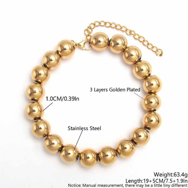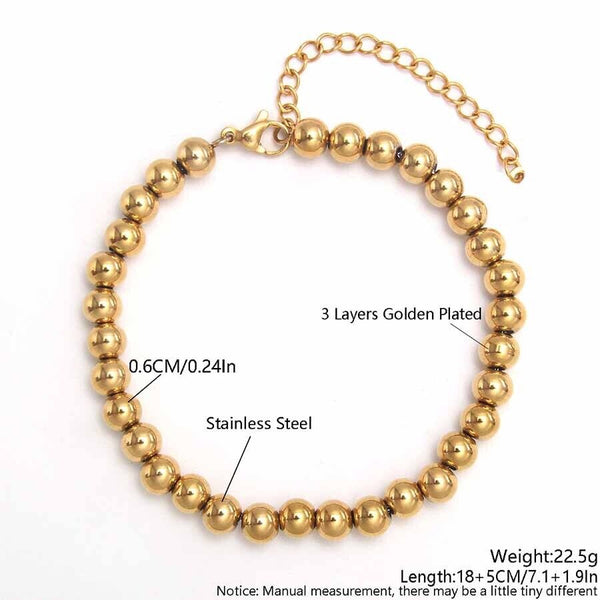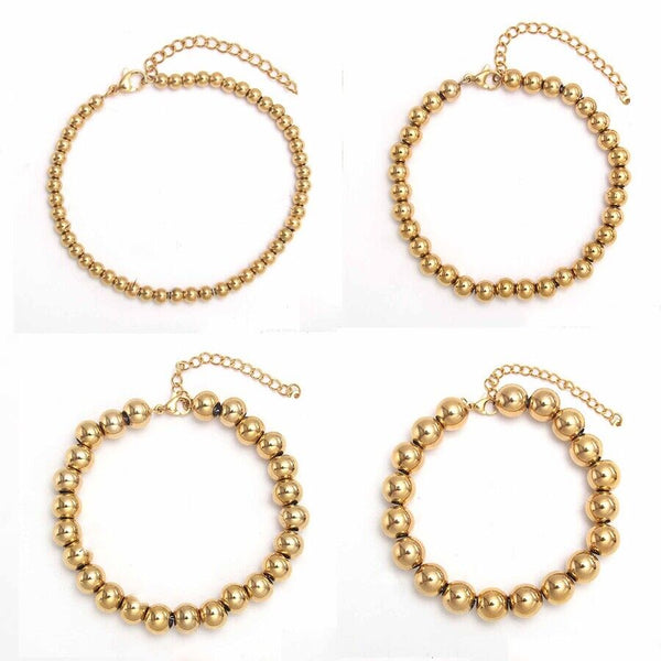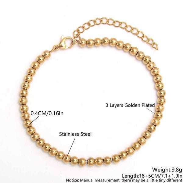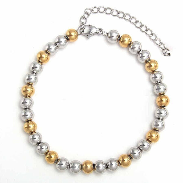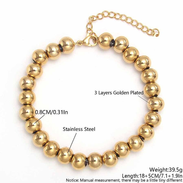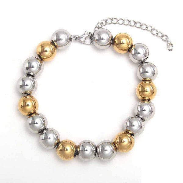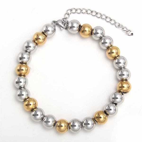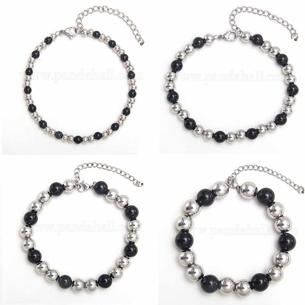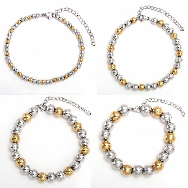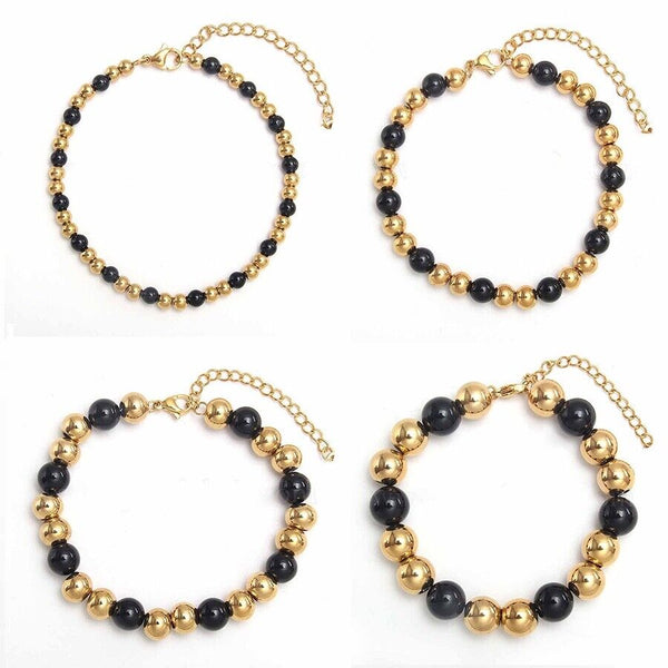 Stainless Steel Bracelet Bead Beaded Adjustable Size Gold Silver Black T17