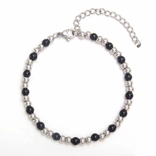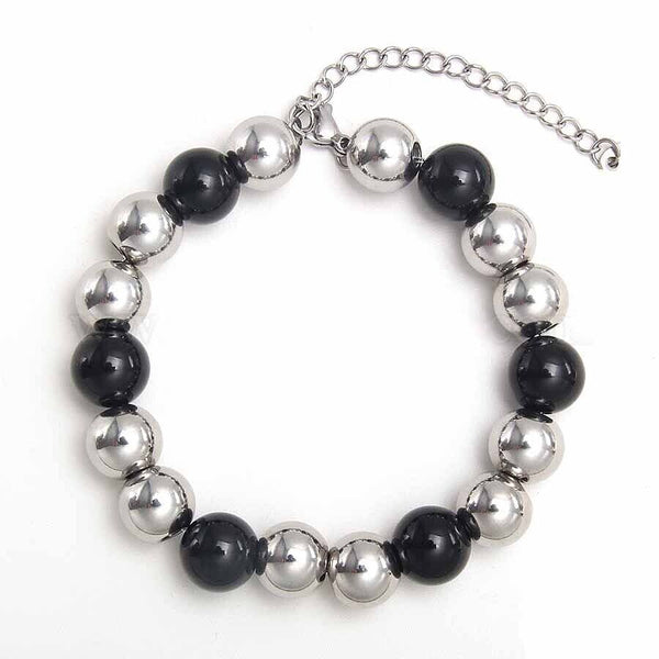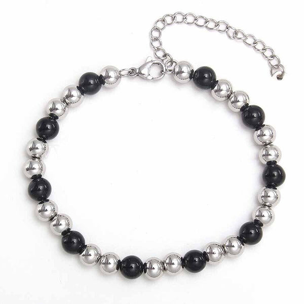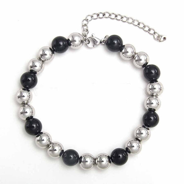 Non-Tarnish This stainless steel bead bracelet is a perfect combination of simplicity and fashion. The colorful beads are strung together on a durable stainless steel chain, creating a stylish and eye-catching accessory. The bracelet is lightweight, weighing only 20 grams, making it comfortable to wear all day long. Whether worn alone or stacked with other bracelets, this piece is sure to add a pop of color to any outfit. Made from high-quality stainless steel, this bracelet is built to last and will not tarnish or fade over time. Perfect for everyday wear or special occasions, this bracelet is a versatile and timeless addition to any jewelry collection. Add a touch of fun and sophistication to your look with this stainless steel bead bracelet.