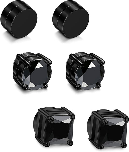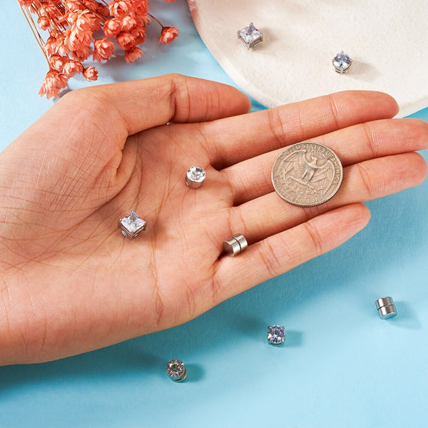 3 Style Clear Cubic Zirconia Flat Round Clip-on Earrings, Magnetic Stainless Steel & 316 Stainless Steel Non-Piercing Earrings for Women and Men, Stainless Steel Color.