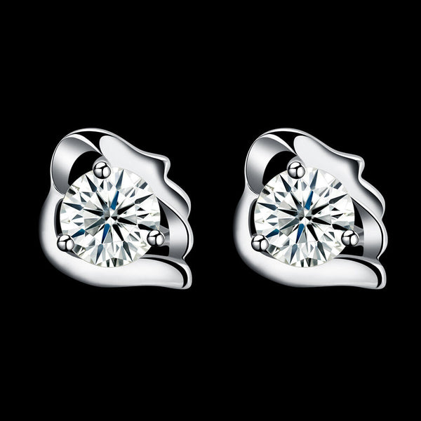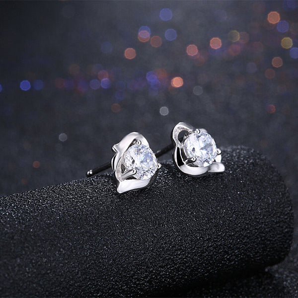 Sterling Silver Earrings Stud AAA Zirconia Push Back Clasp L738