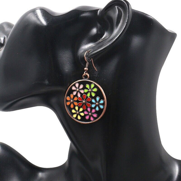 Bohemia Earrings Dangle Drop Emamel Flower Colorful Red Copper Fish Hook E15