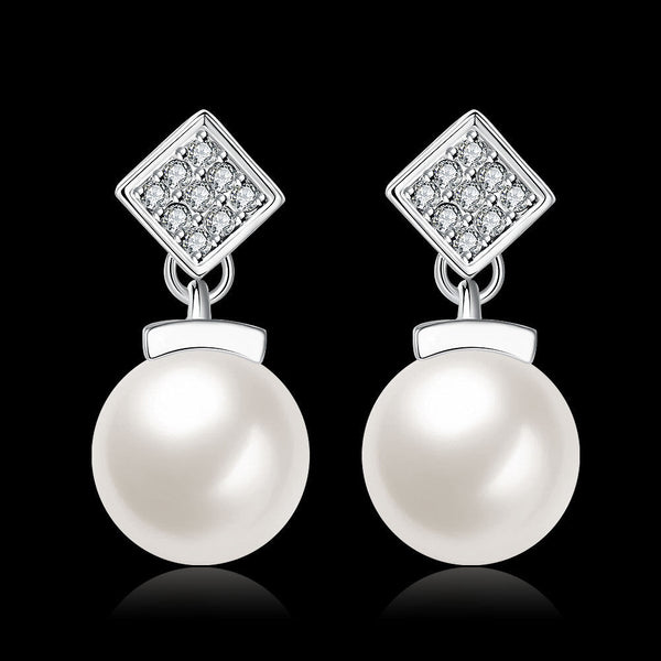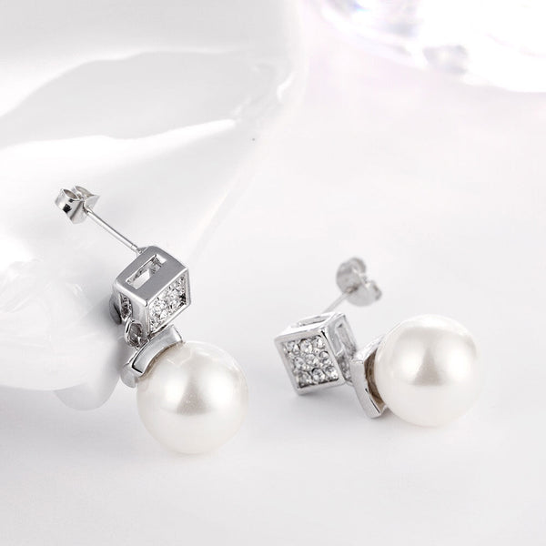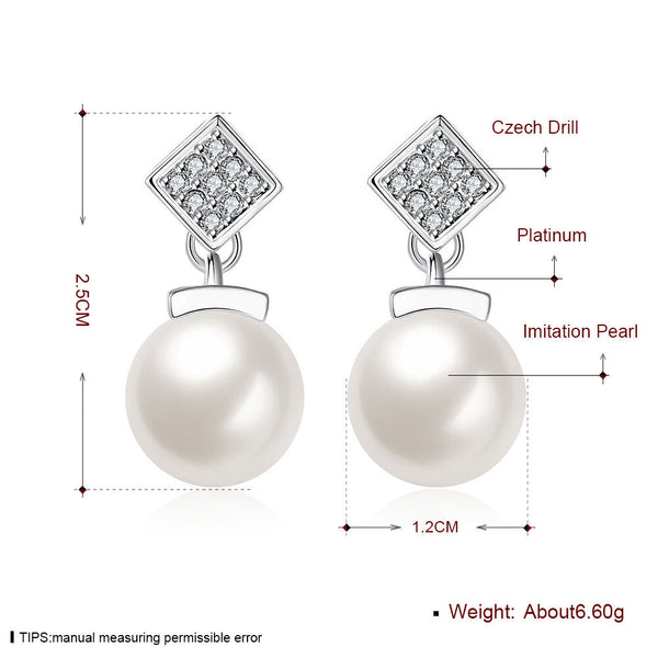Platinum Plated Earrings Drop Dangle AAA Zirconia Push Back .48" L197
