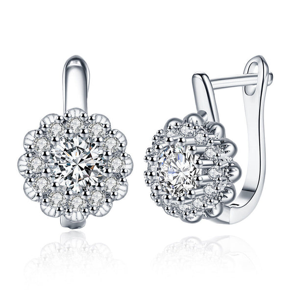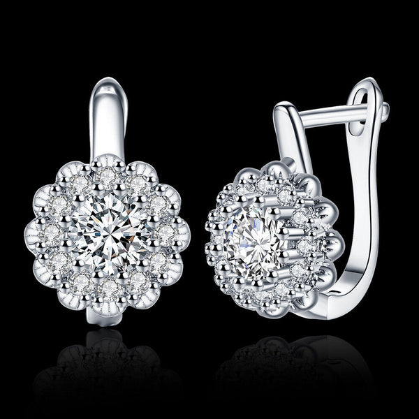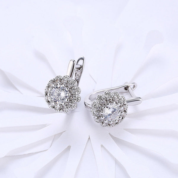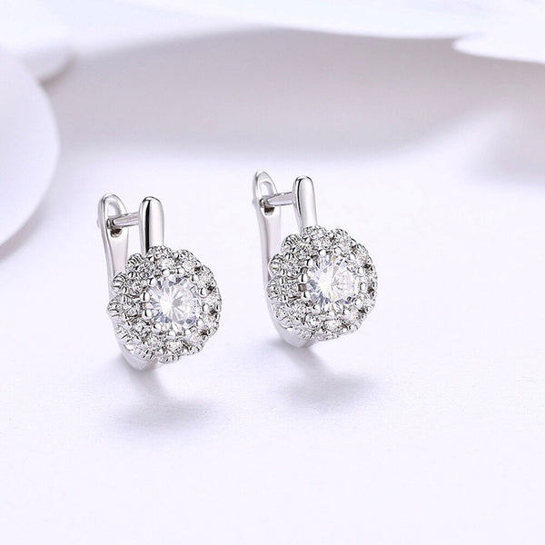 Platinum Plated Earrings Hoop Huggies AAA Zirconia Latch Back Clasp L582