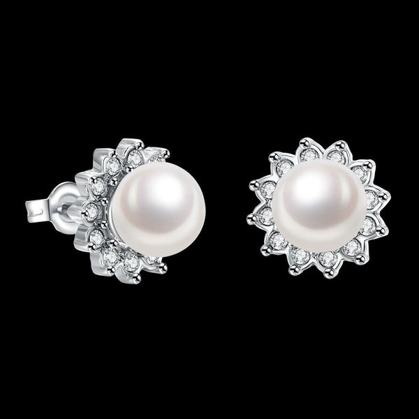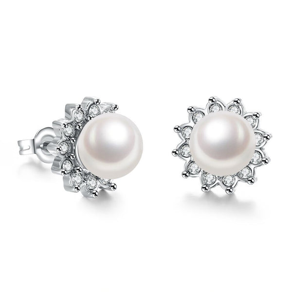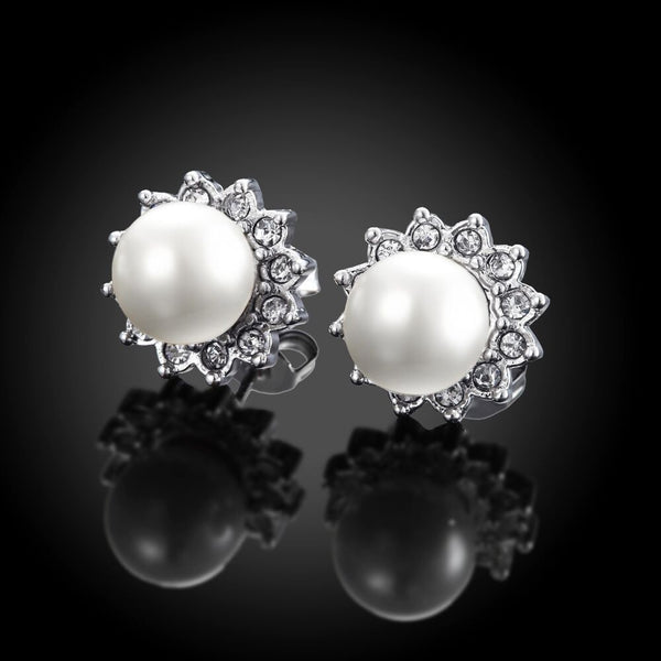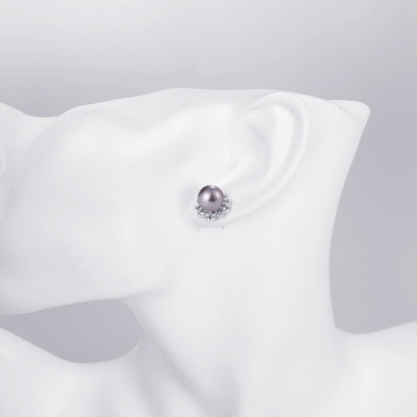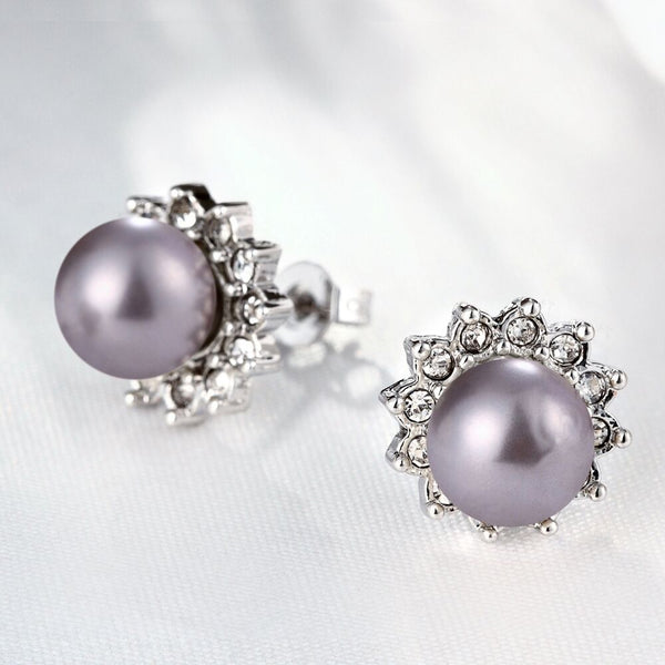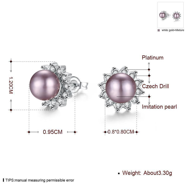 Platinum Plated Purple Fuchsia Earrings Stud Synthetic Pearl Push Back l165