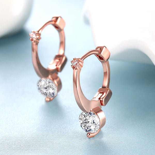 Rose Gold Plated Earrings Hoop Huggies AAA Zirconia Latch Back Clasp L463