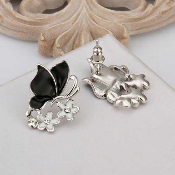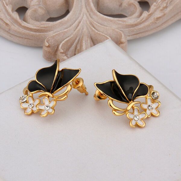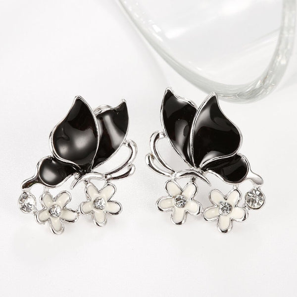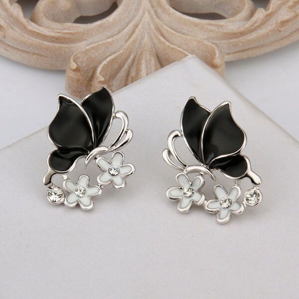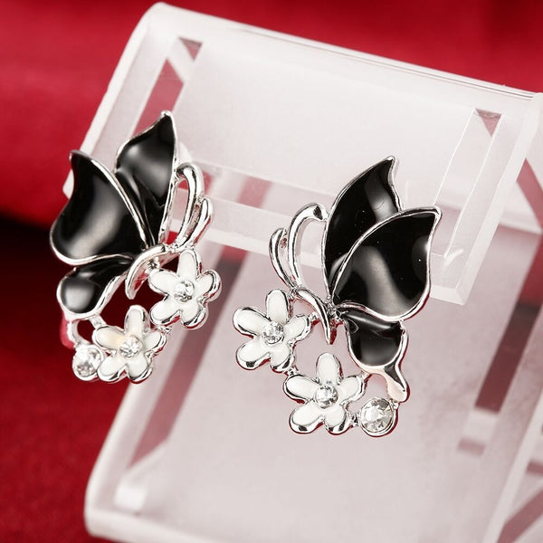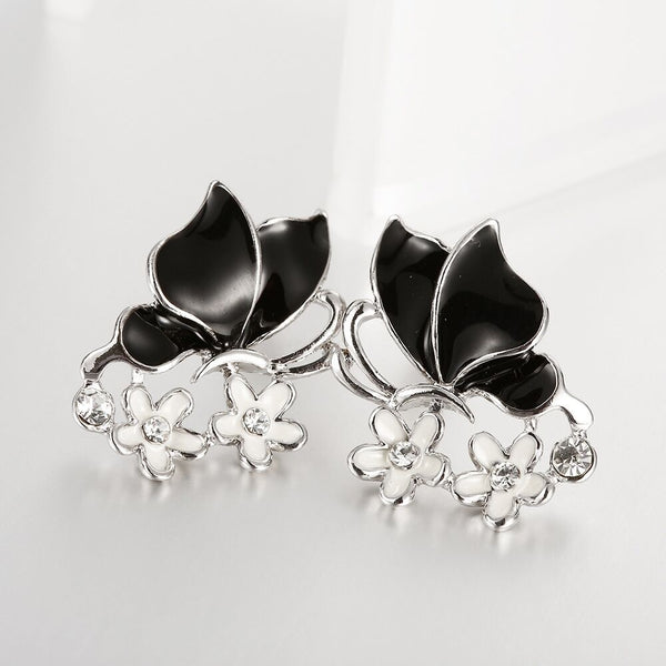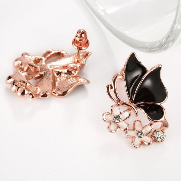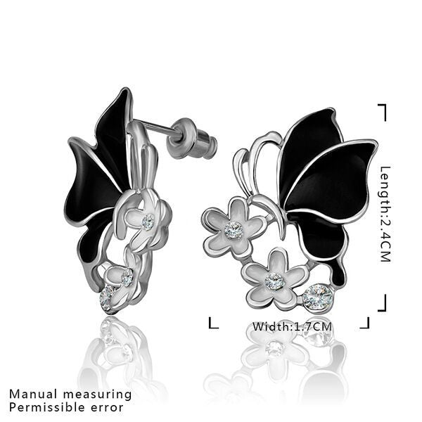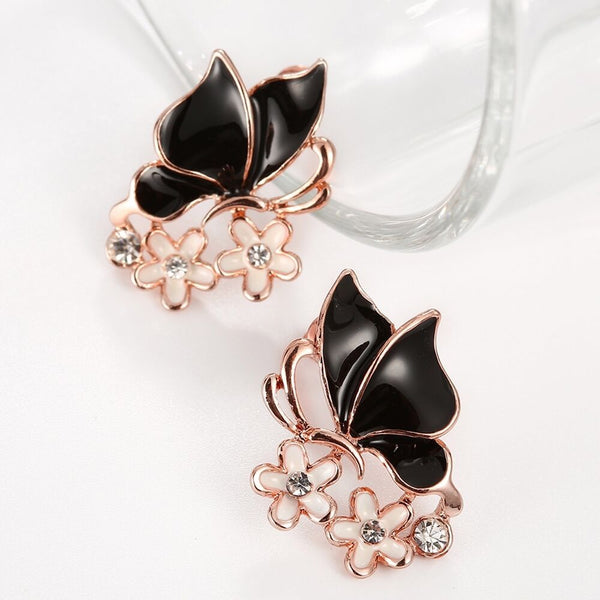 Rose Gold Platinum Plated Black Earrings Zirconia Push Back Butterfly .68" L303