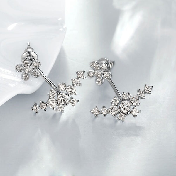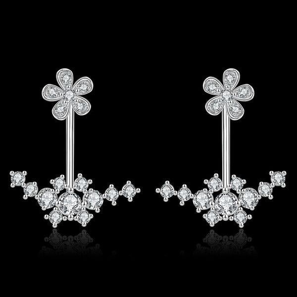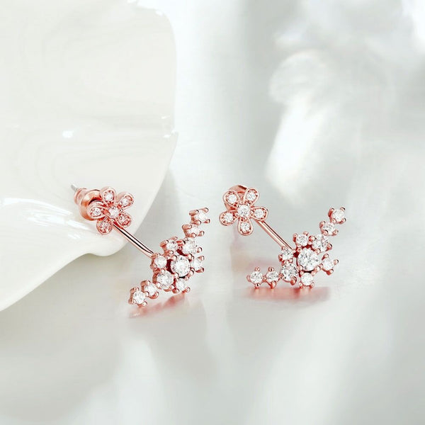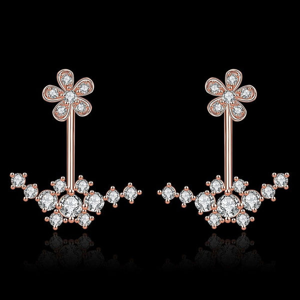 Rose Gold Platinum Plated Earrings AAA Zirconia Push Back Flowers .72" L224