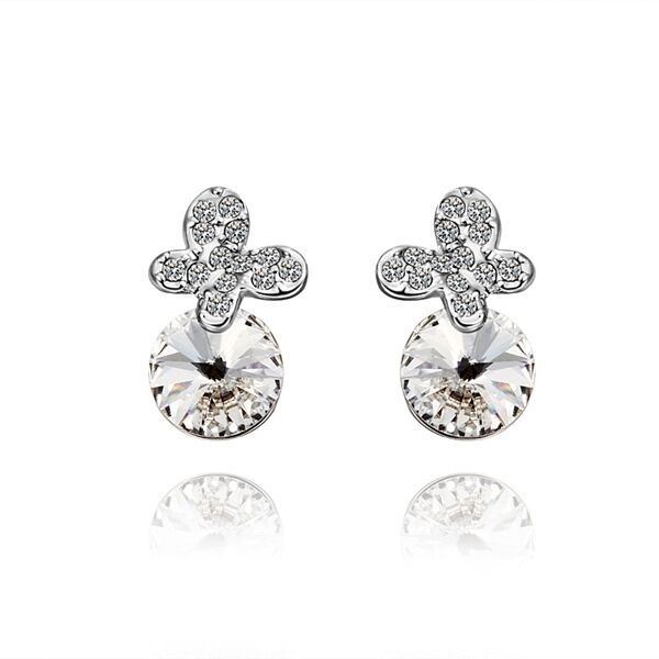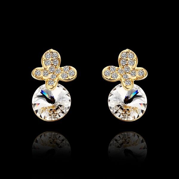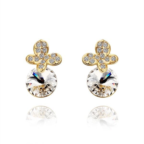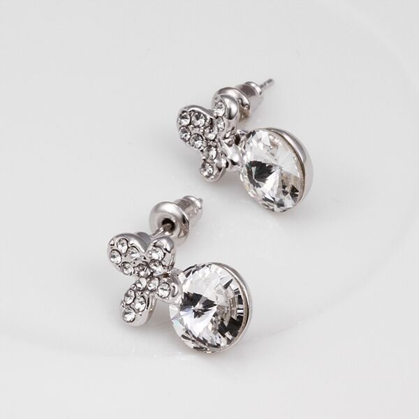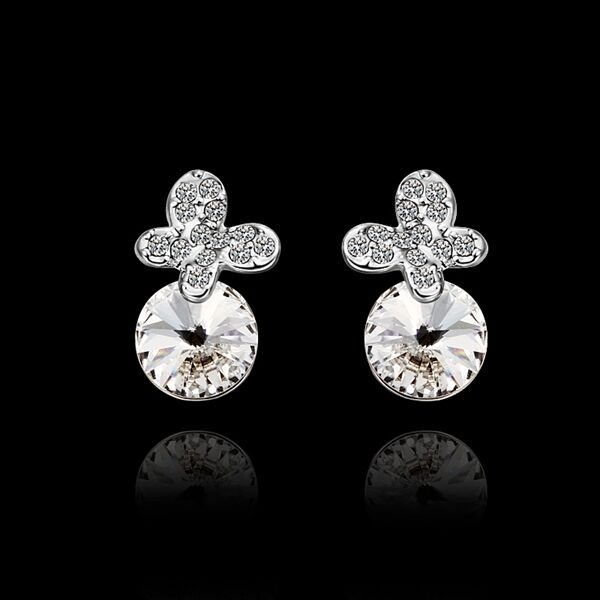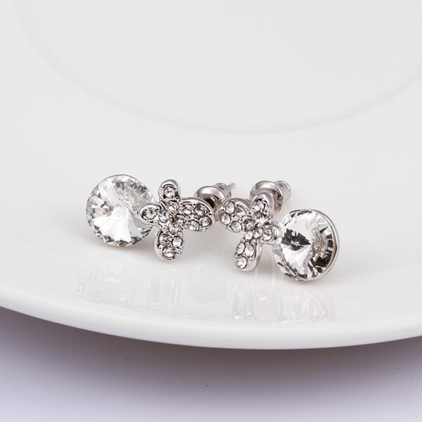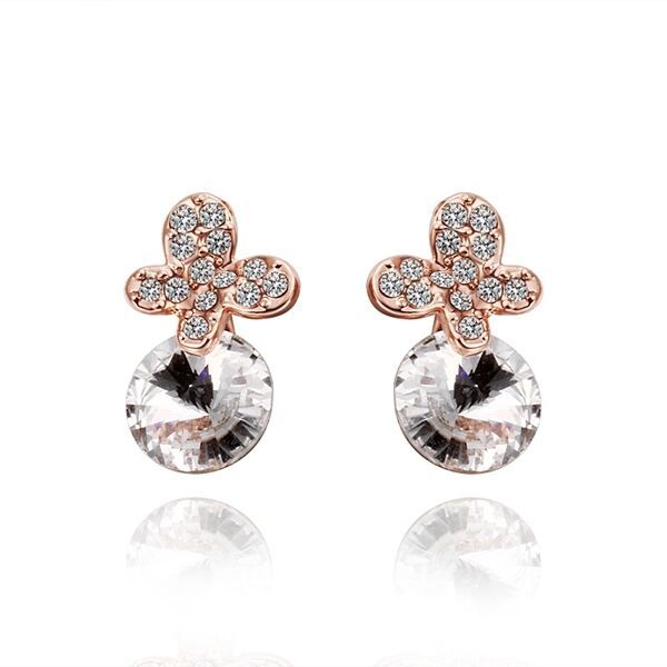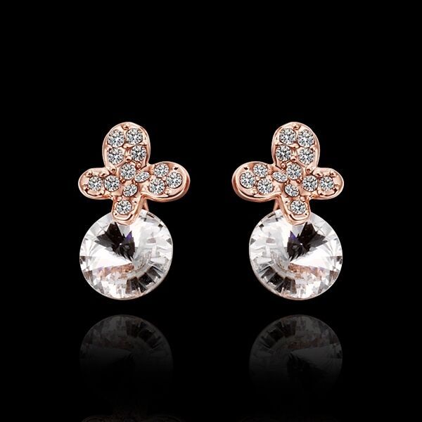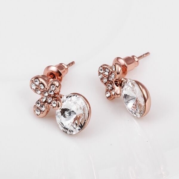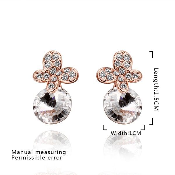 Rose Gold Platinum Plated Earrings Stud AAA Zirconia Push Back .4" L296