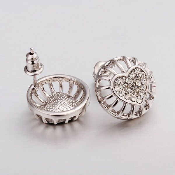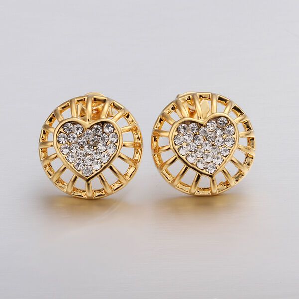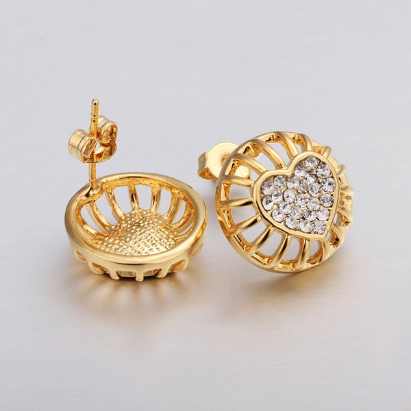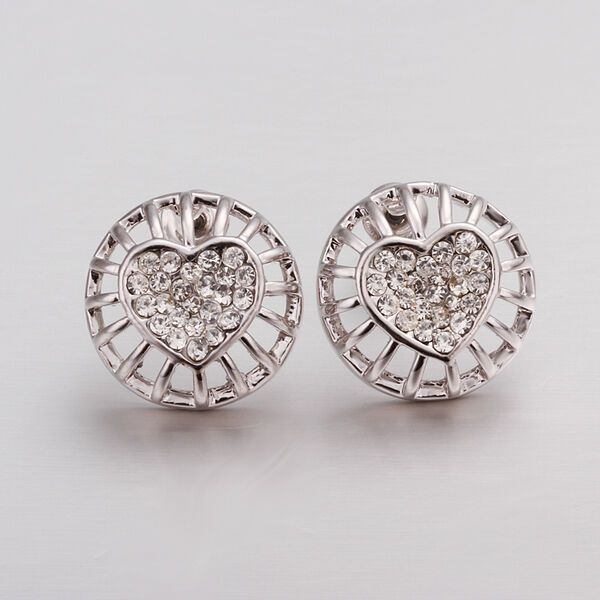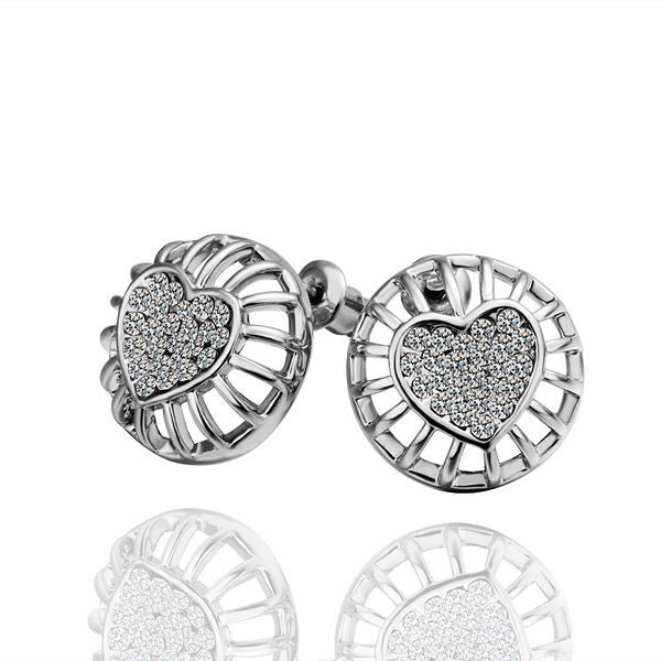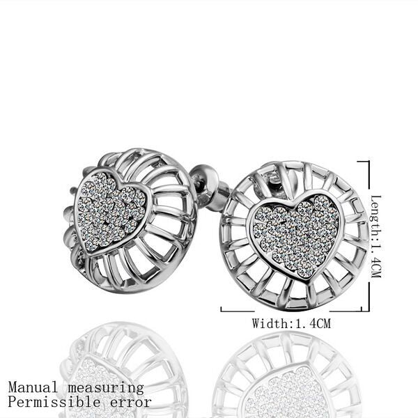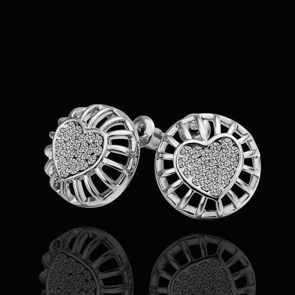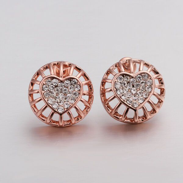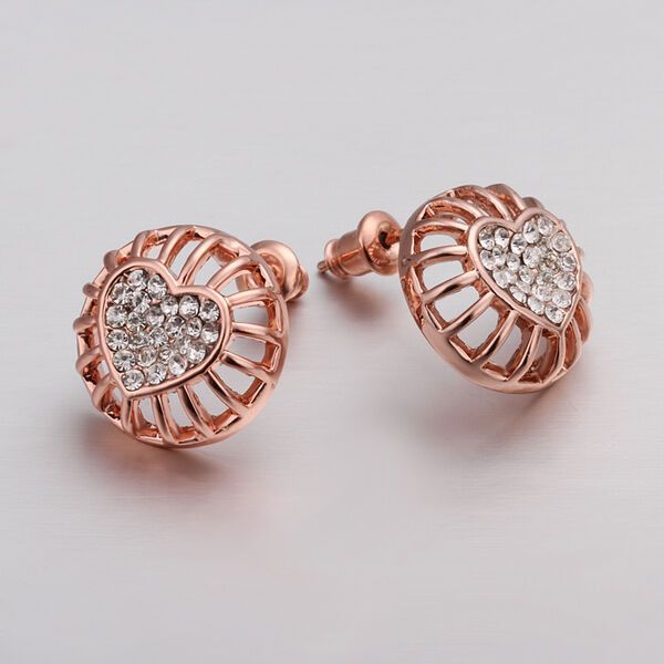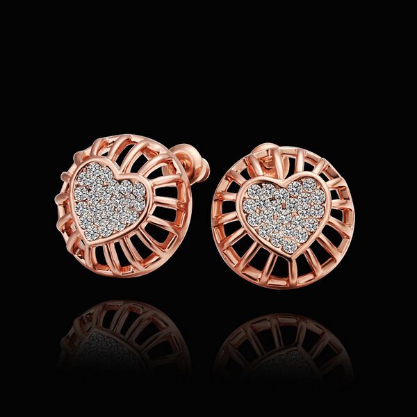 Rose Gold Platinum Plated Earrings Stud AAA Zirconia Push Back Heart .56" L272