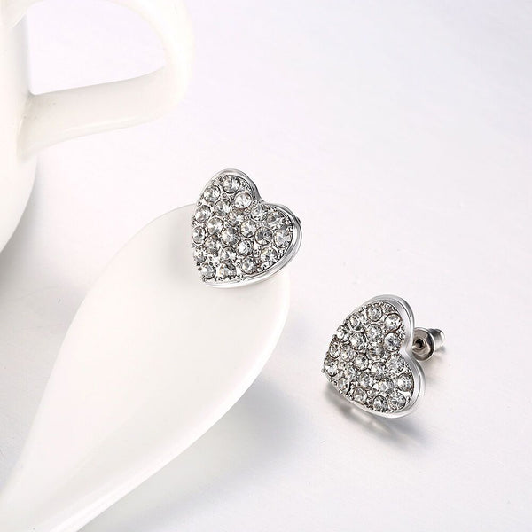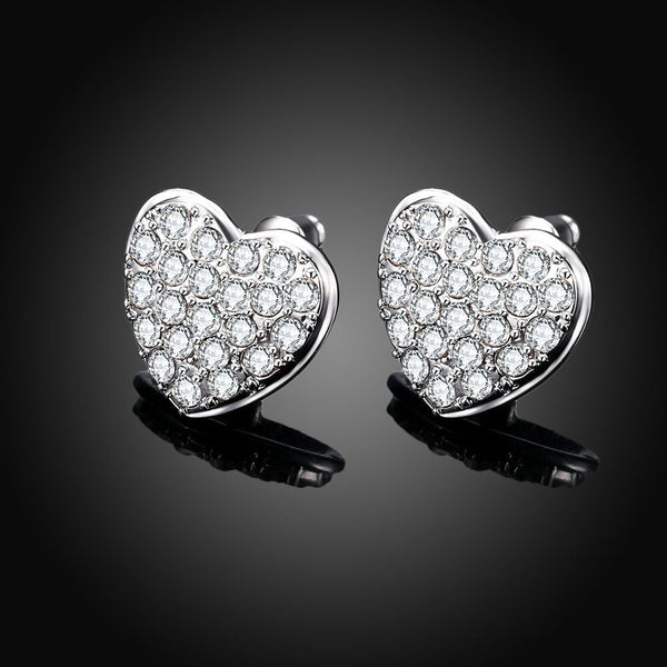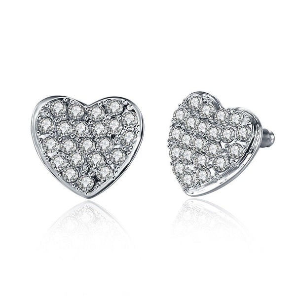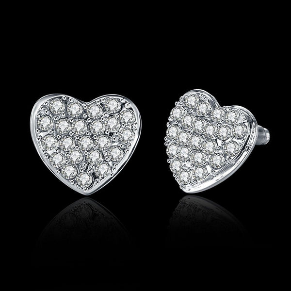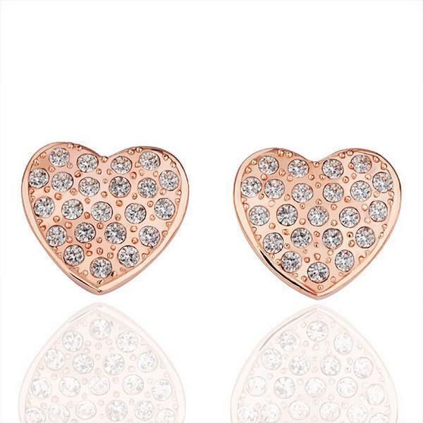 Rose Gold Platinum Plated Earrings Stud AAA Zirconia Push Back Heart .64" L241