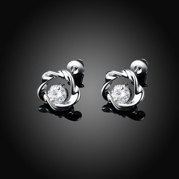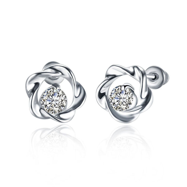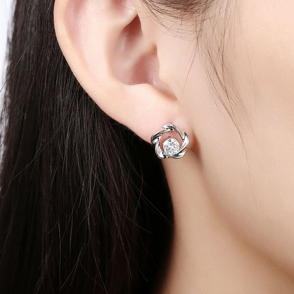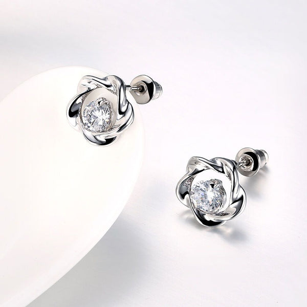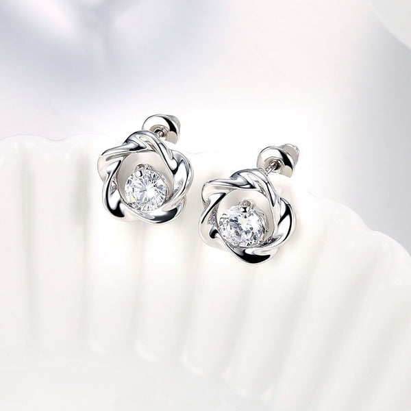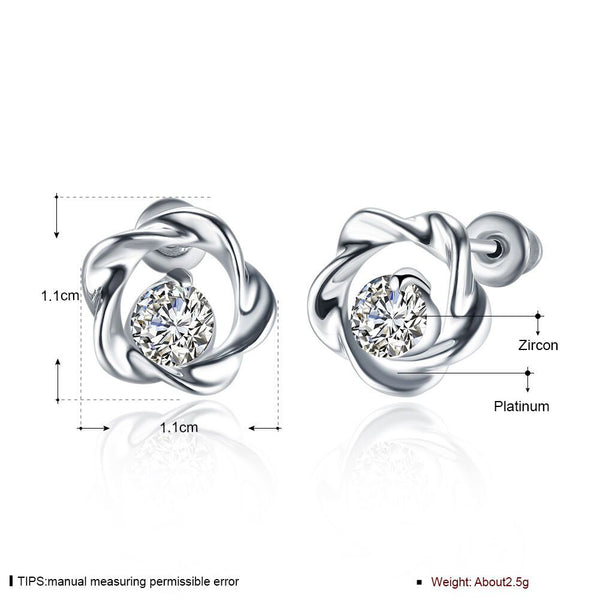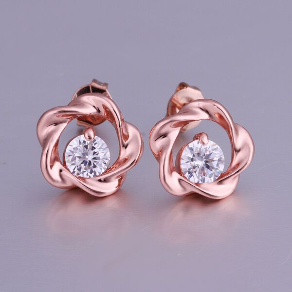 Rose Gold Platinum Plated Earrings Stud AAA Zirconia Push Back Rose .44" L283
