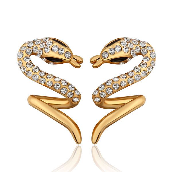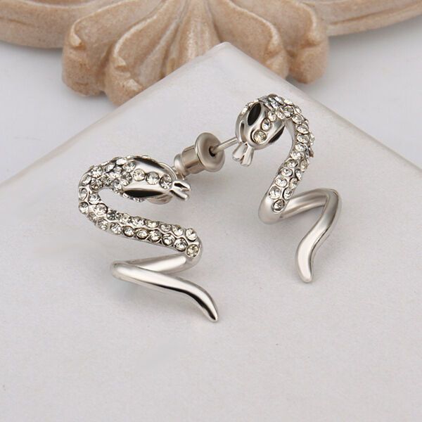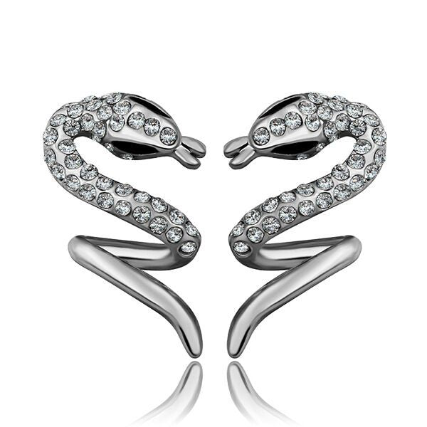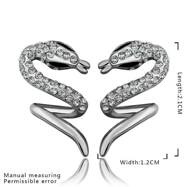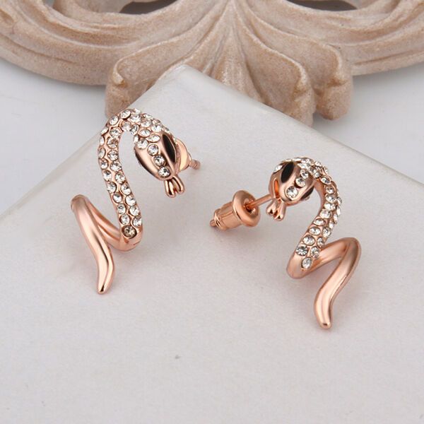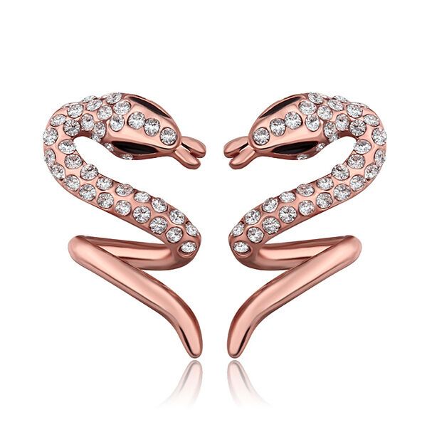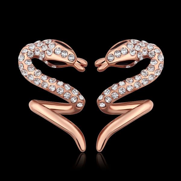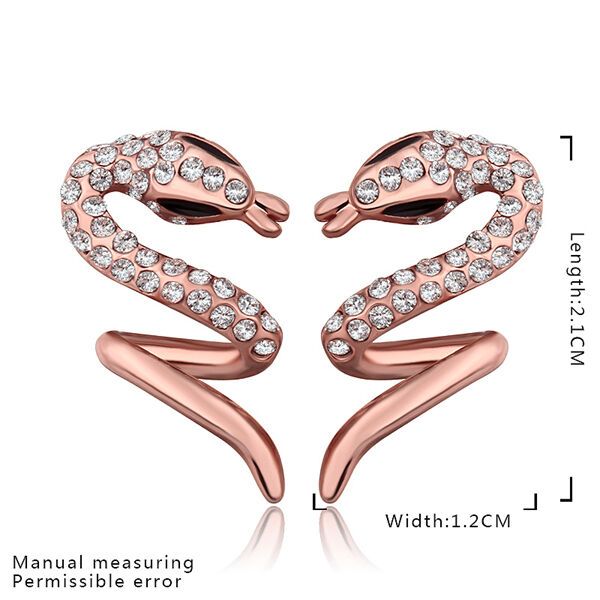 Rose Gold Platinum Plated Earrings Stud AAA Zirconia Push Back Snake .48" L313