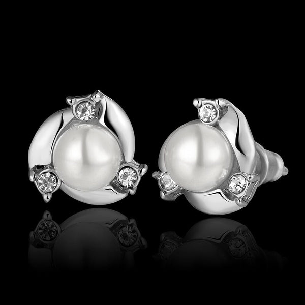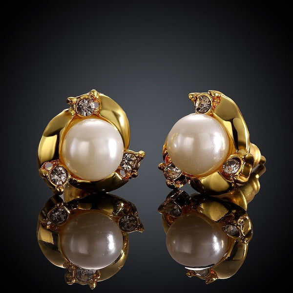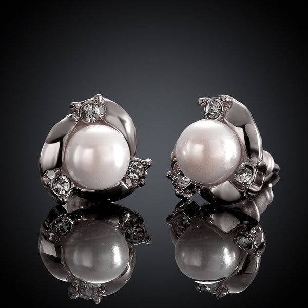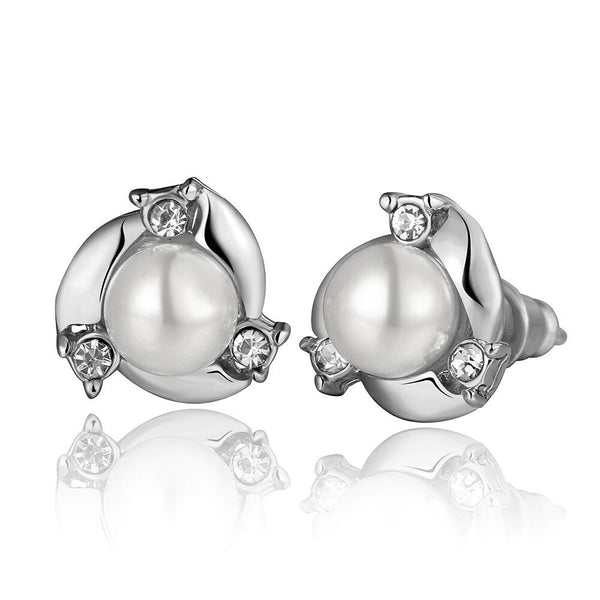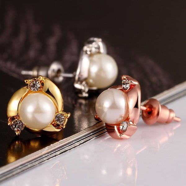 Rose Gold Platinum Plated Earrings Stud Pearl AAA Zirconia Push Back .4" L260