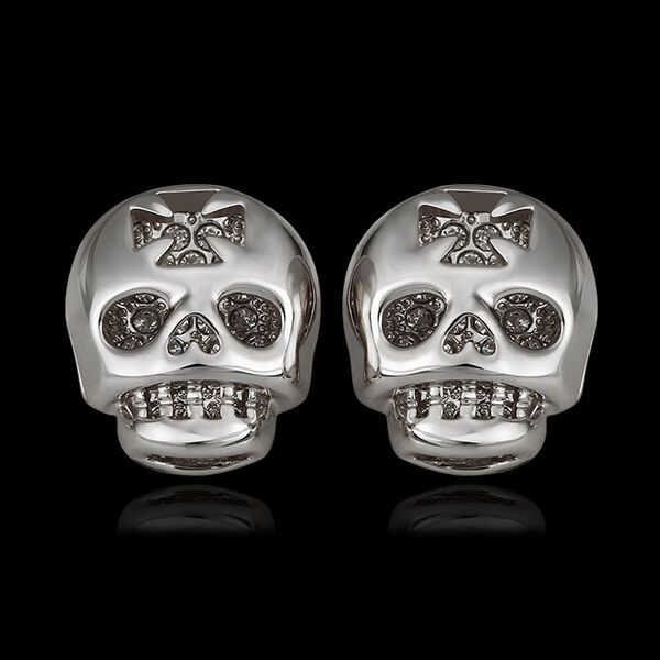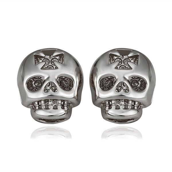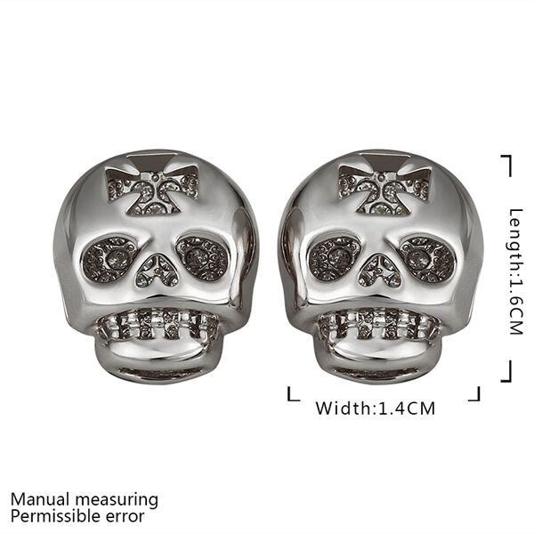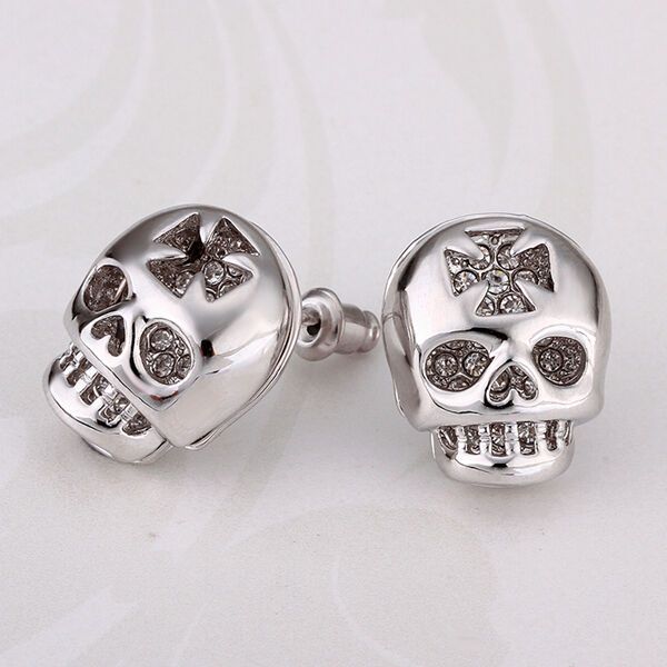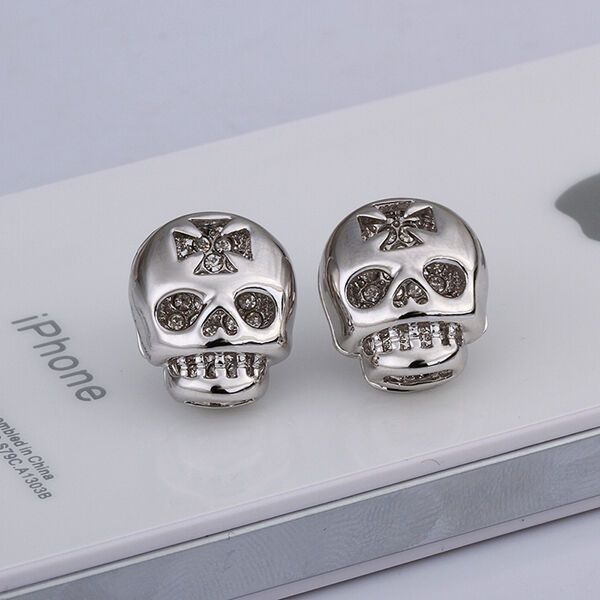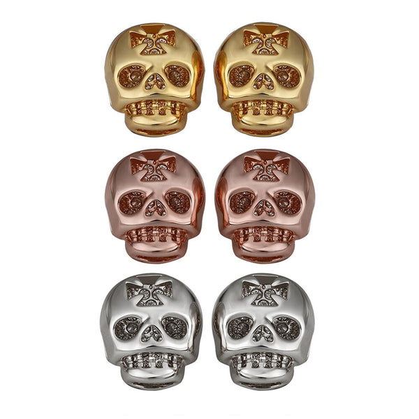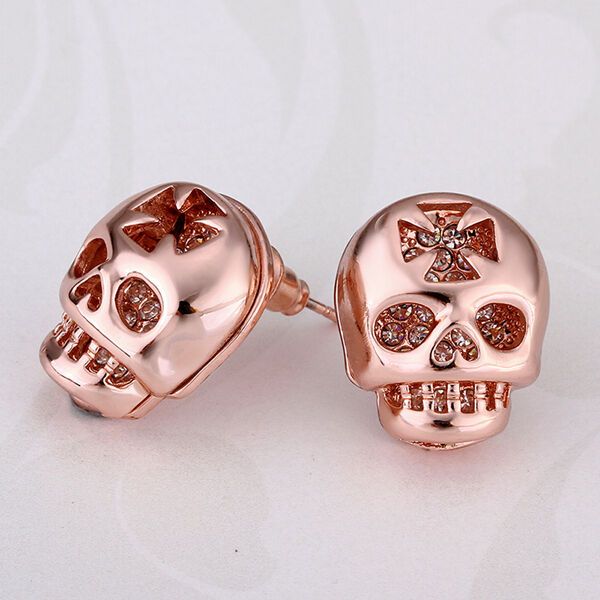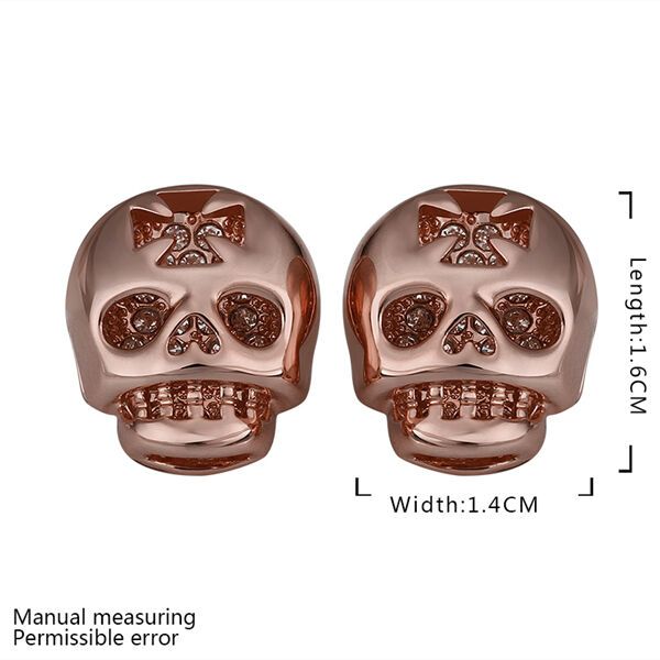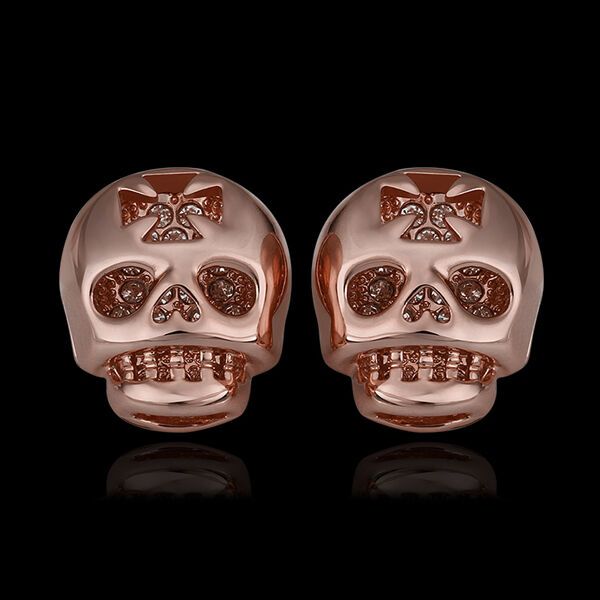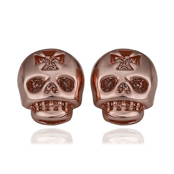 Rose Gold Platinum Plated Earrings Stud Push Back Skull .56" L316