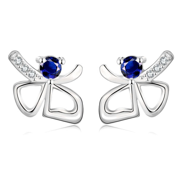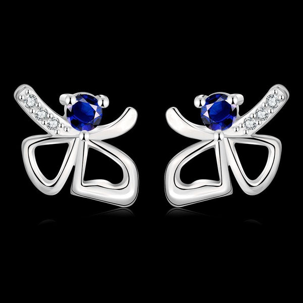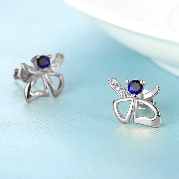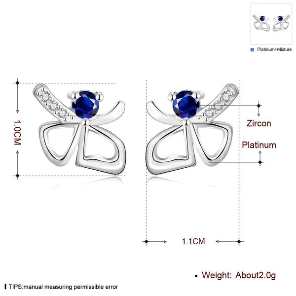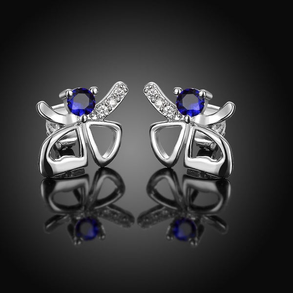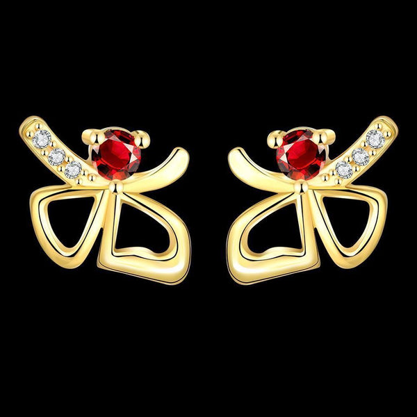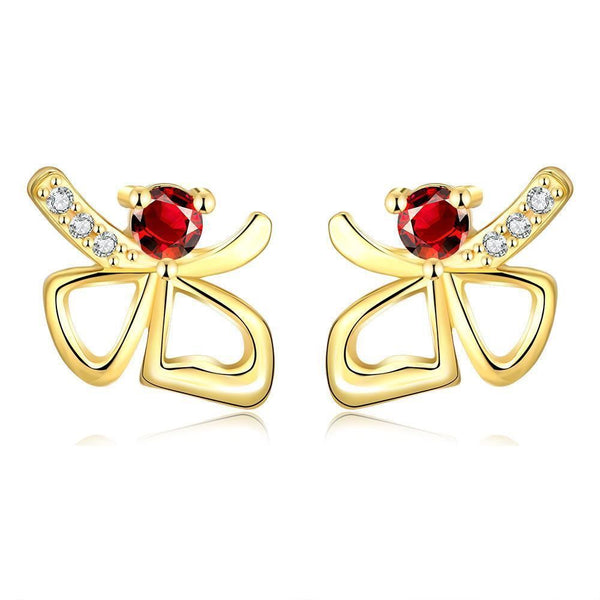 Rose Gold Platinum Plated Red Earrings Stud AAA Zirconia Push Back Bow .44" L233