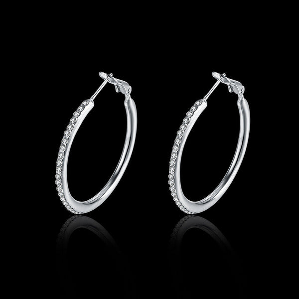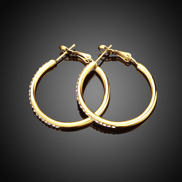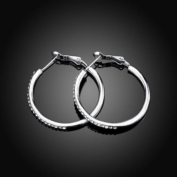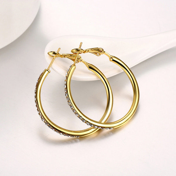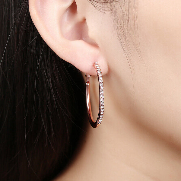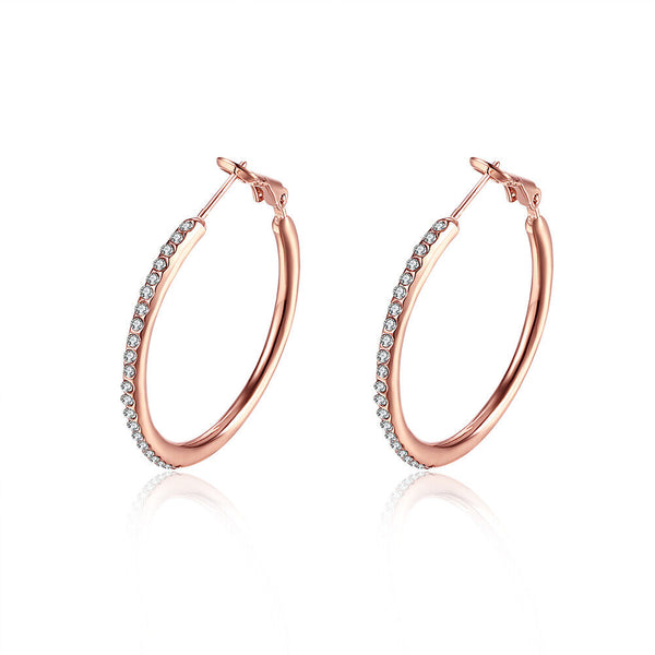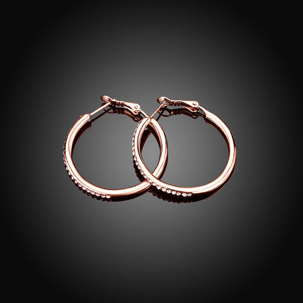 Rose Yellow Gold Silver Zirconia Latch Back Hoop Earrings L113
