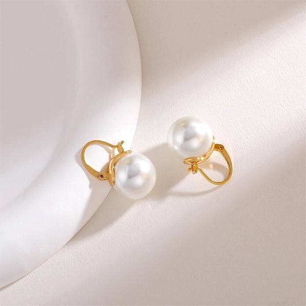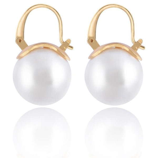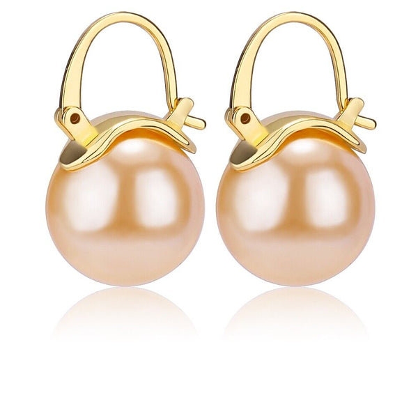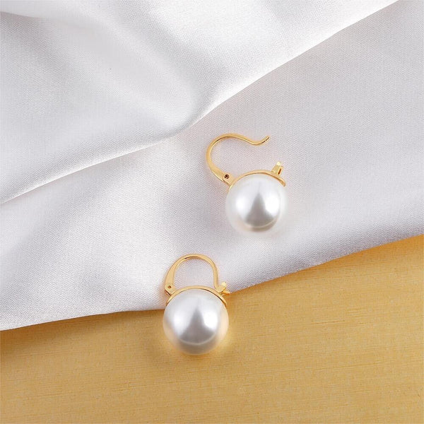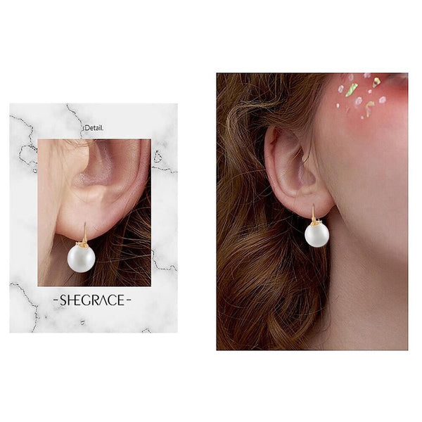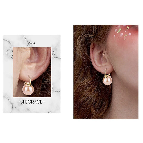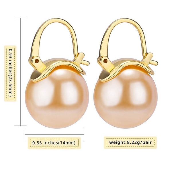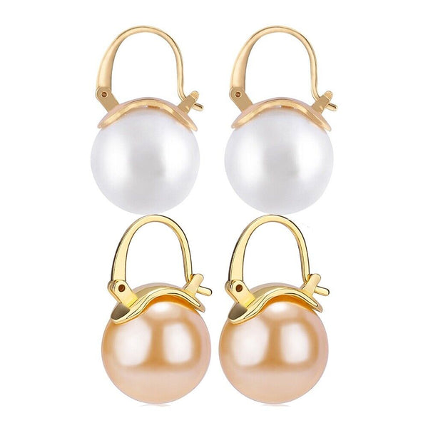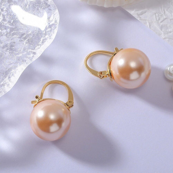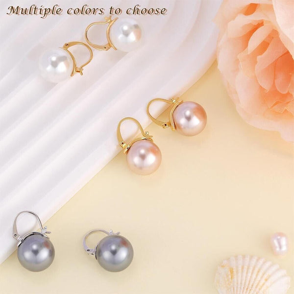 Pearl Earrings Gray Round Ball Hoop Dangle Earrings Stud Elegant Shell Pearl Drop Stud Imitation Freshwater Cultured Pearls Earrings Brass Charms Jewelry Gift for Women, White and Pink.