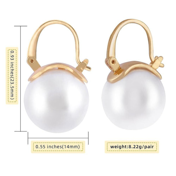 Size: Pearl earrings: about 0.93 inches long (2.35cm), 0.55 inches wide (1.4cm), pin: 0.03 inches thick (0.08cm); pearl: about 0.55 inches in diameter (1.4cm).
