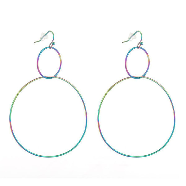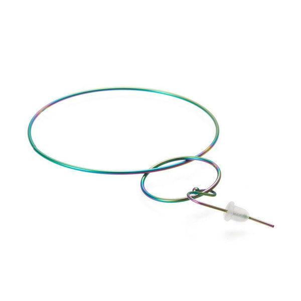 Stainless Steel Dangle Earrings Plastic Ear Nuts Ring Rainbow 75mm 0.6mm Z319