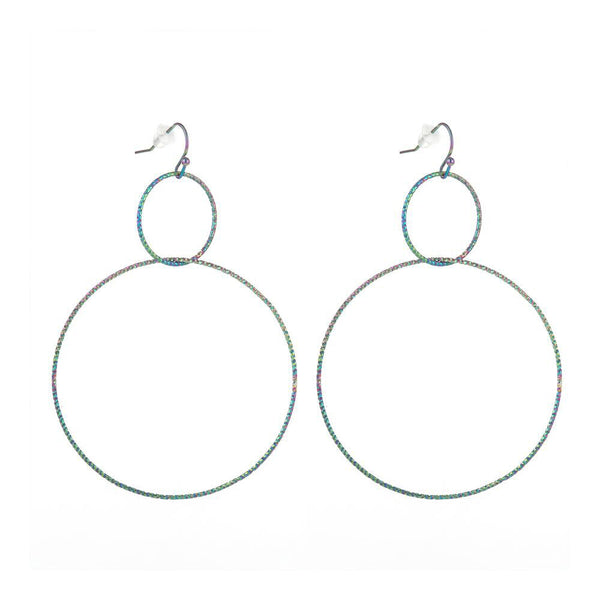 Vacuum Plating 304 Stainless Steel Dangle Earrings, with Plastic Ear Nuts, Textured, Ring, Rainbow, Multi-color