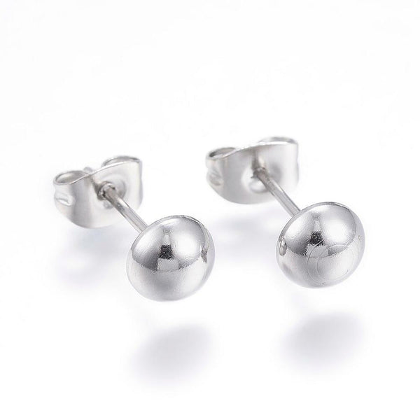 304 Stainless Steel Ear Studs, Hypoallergenic Earrings, Half Round/Dome, Mixed Color