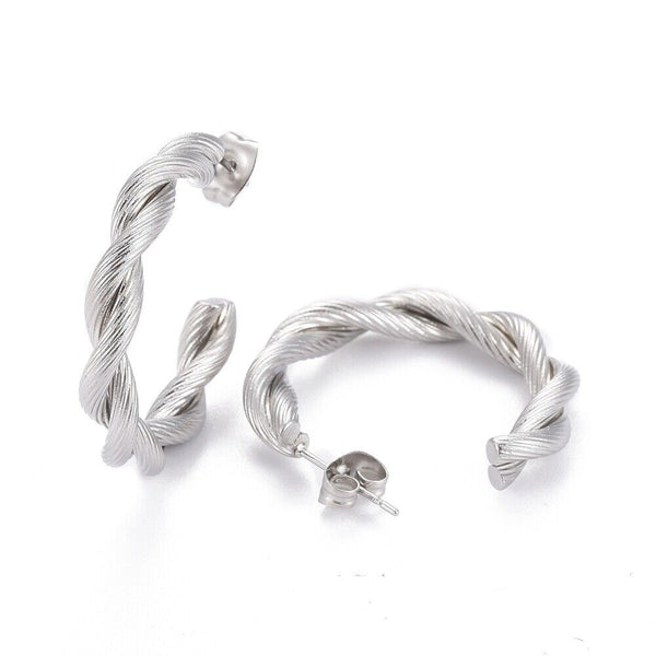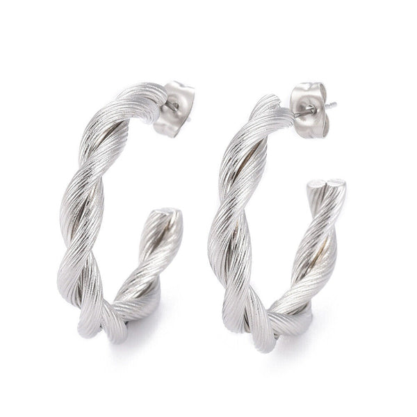 Stainless Steel Half Hoop Earrings Stud Hypoallergenic Twisted Ring Gold Z277