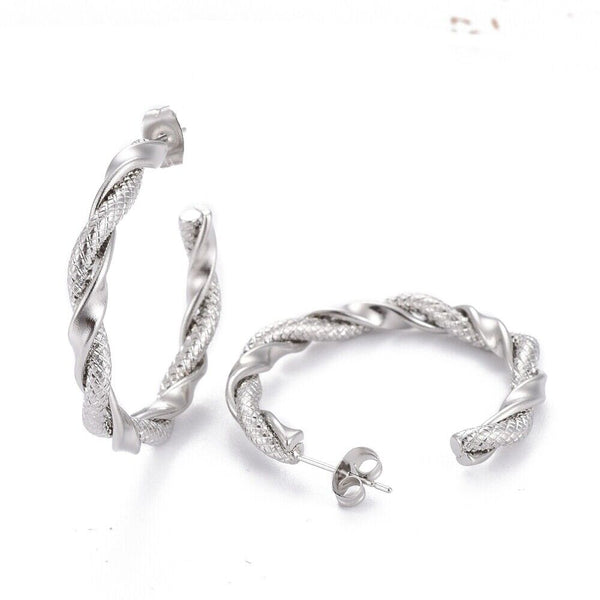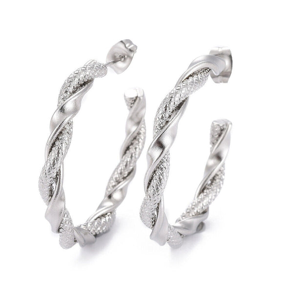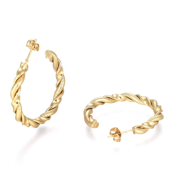 Stainless Steel Half Hoop Earrings Stud Hypoallergenic Twisted Ring Gold Z279