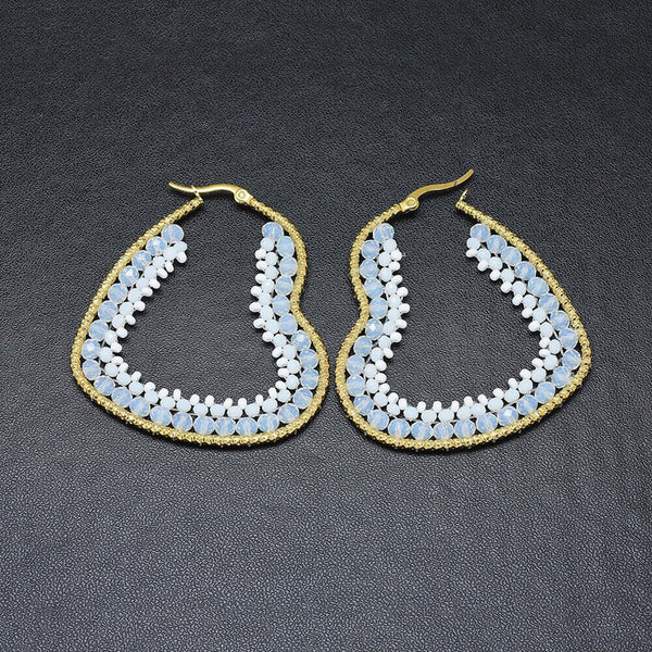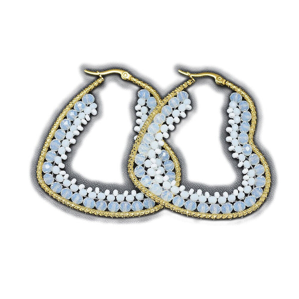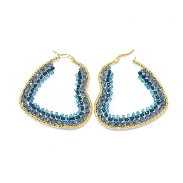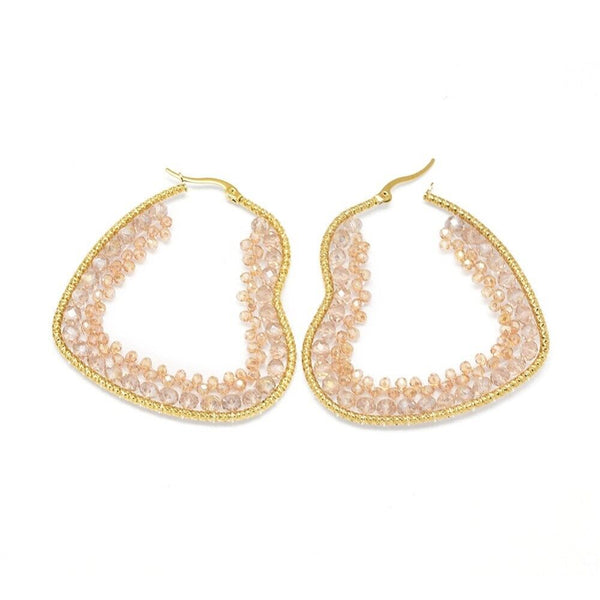 304 Stainless Steel Hoop Earrings, with Glass Beads, Heart, Golden, Mixed Color