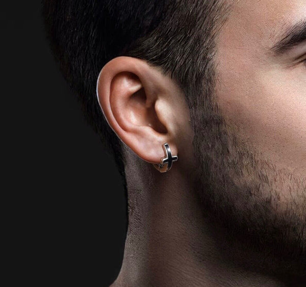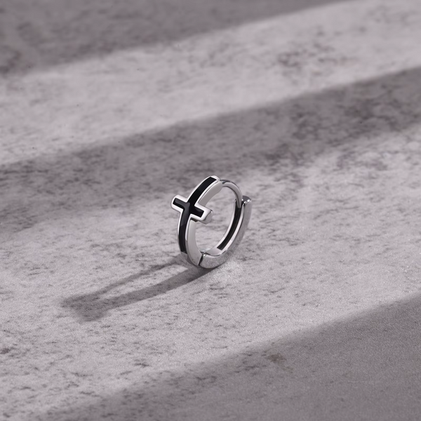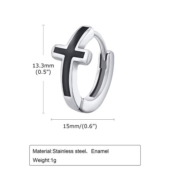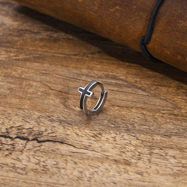 Non-Tarnish Stainless Steel Cross Huggie Hoop Earring for Men, Religion, Stainless Steel Color