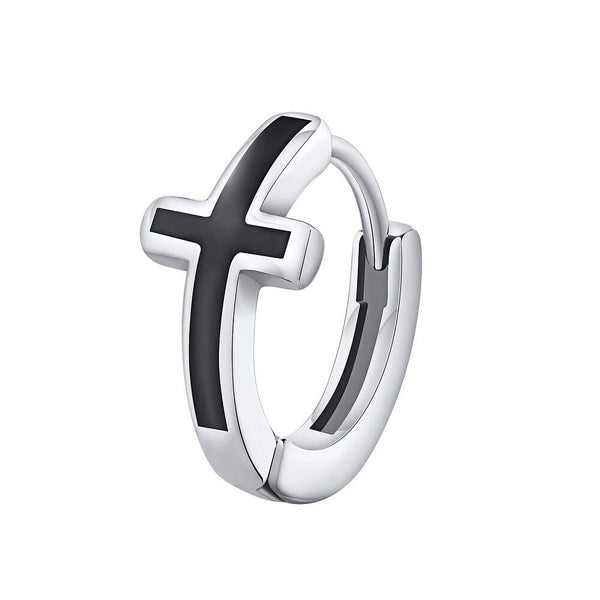 Stainless Steel Huggie Hoop Men Women Earrings Religion Cross Black Silver E38