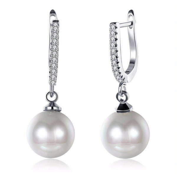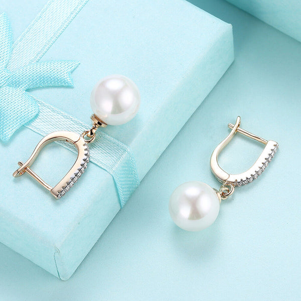 Yellow Gold Plated Earrings Drop Dangle AAA Zirconia Latch Back Clasp L549