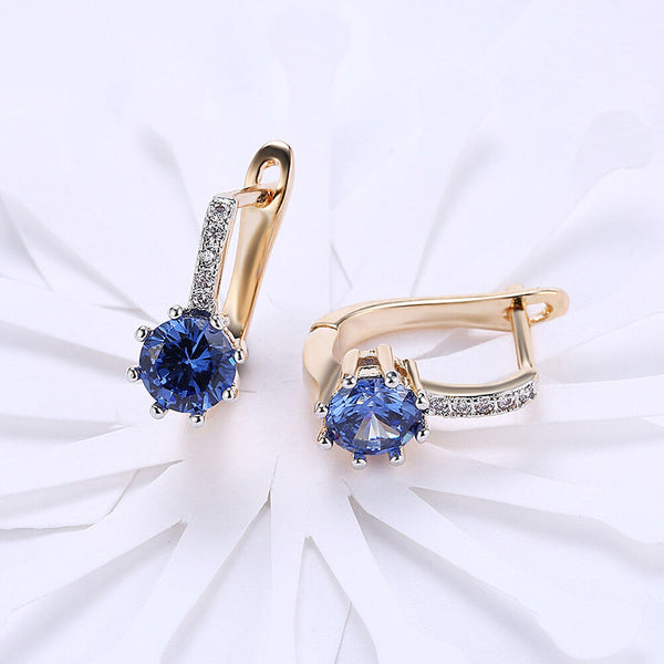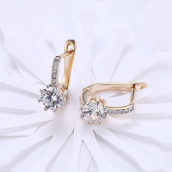 Yellow Gold Plated Earrings Hoop Huggies AAA Zirconia Latch Back Clasp L592