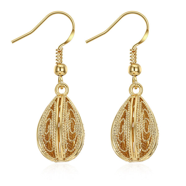 Yellow Gold Platinum Plated Earrings Drop Dangle Fish Hook Clasp L640