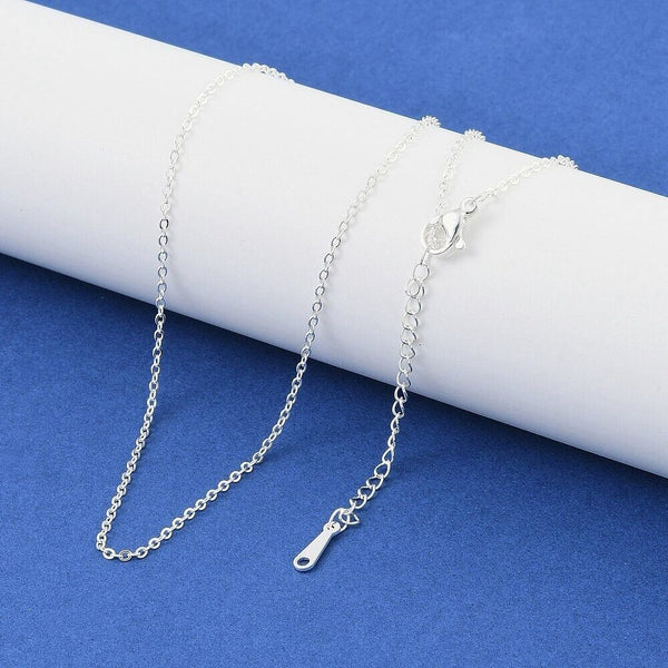 925 Sterling Silver Plated Cable Chain Rolo Chain Necklace Extender N4