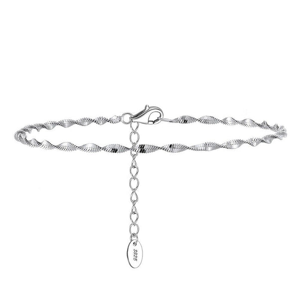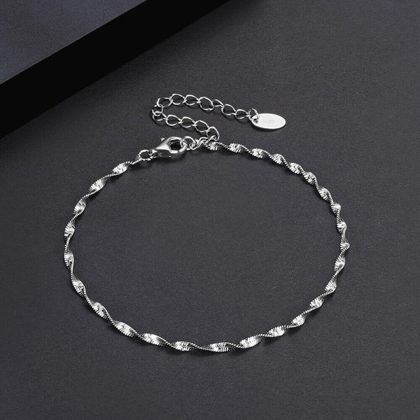 925 Sterling Silver Twisted Diamond Cut Snake Chain Singapore Bracelet T91
