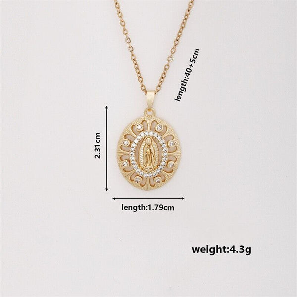 This fashion-forward and unique copper inlaid zircon retro portrait necklace is a must-have for those looking to make a statement. The intricate hollow design adds a touch of sophistication to any outfit, while the vibrant colors make it a versatile accessory for any occasion. Made from high-quality copper, this necklace is both durable and lightweight, making it comfortable to wear all day long. With a weight of just 6 grams, it is the perfect addition to any jewelry collection. Whether you're dressing up for a special event or simply want to add a pop of color to your everyday look, this one-of-a-kind necklace is sure to turn heads. Add a touch of vintage charm and modern style to your wardrobe with this exquisite piece of jewelry.