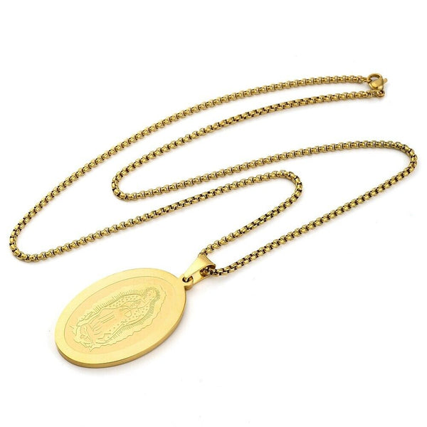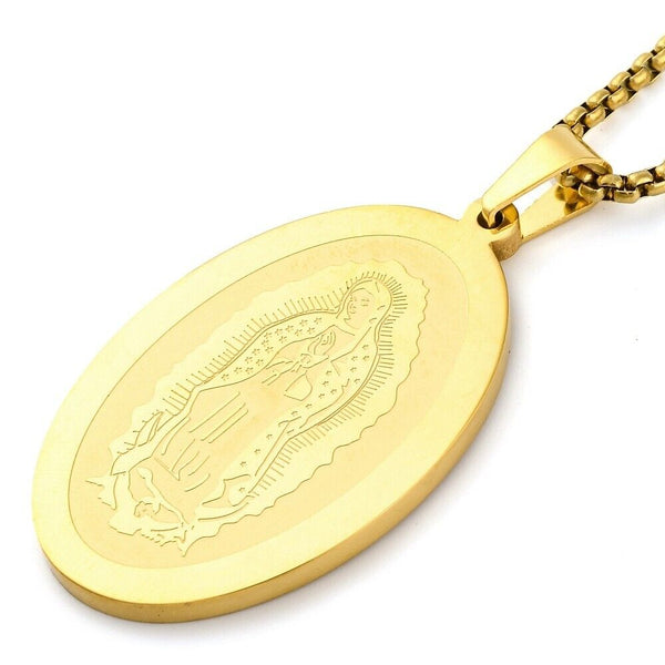 Gold Plated Stainless Steel Guadalupe Virgin Mary Necklace Pendant Box Chain N45