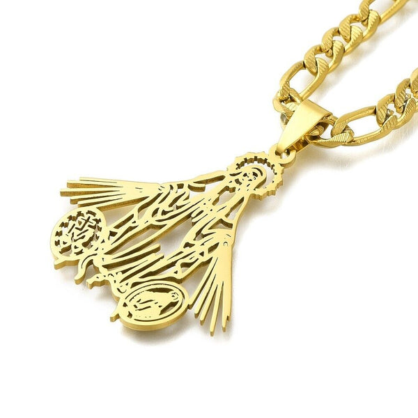 Gold Plated Stainless Steel Pendant Guadalupe Virgin Mary Figaro Necklace N64
