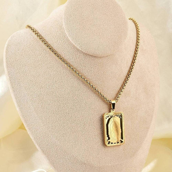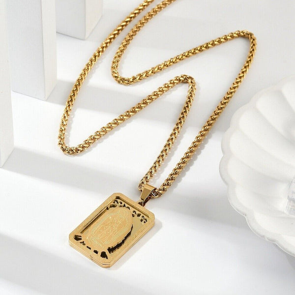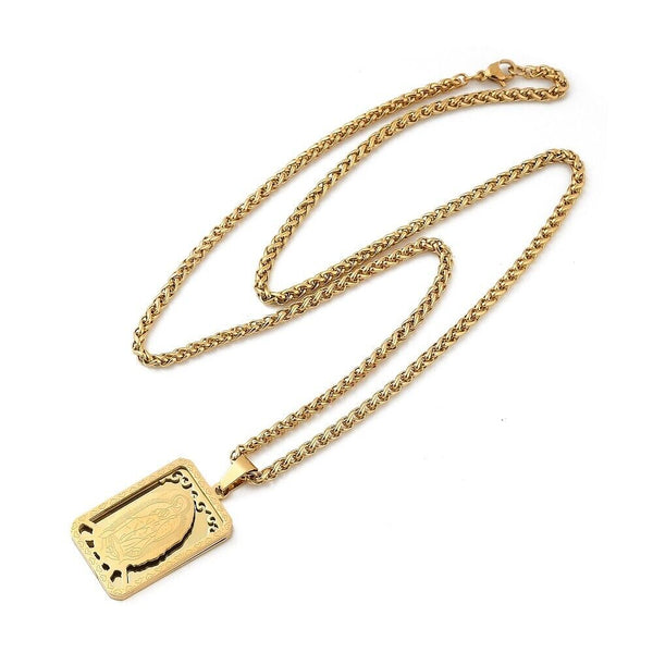 Gold Plated Stainless Steel Pendant Guadalupe Virgin Mary Wheat Necklace N48