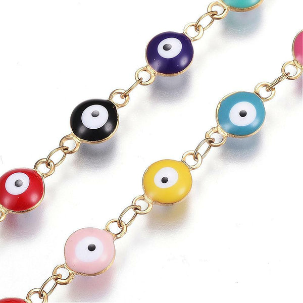 Handmade Rosary Bead Necklaces, 304 Stainless Steel Enamel Necklaces, with Cross Pendant, Golden