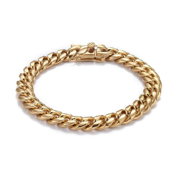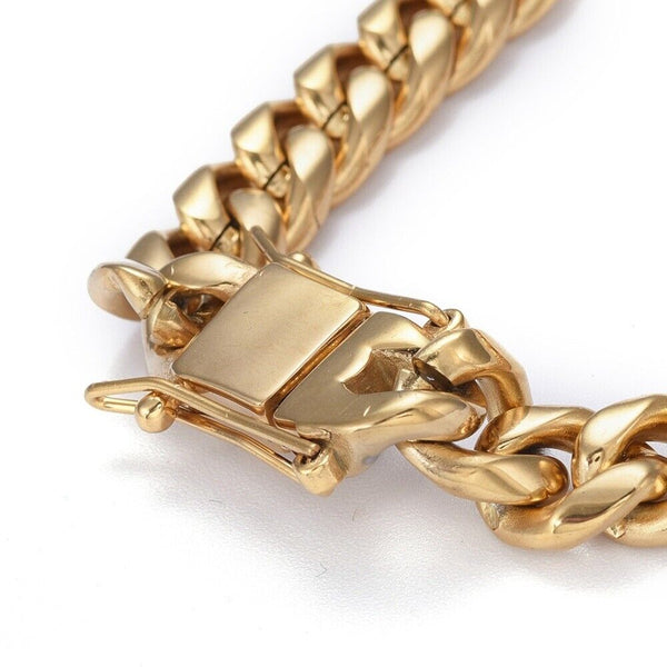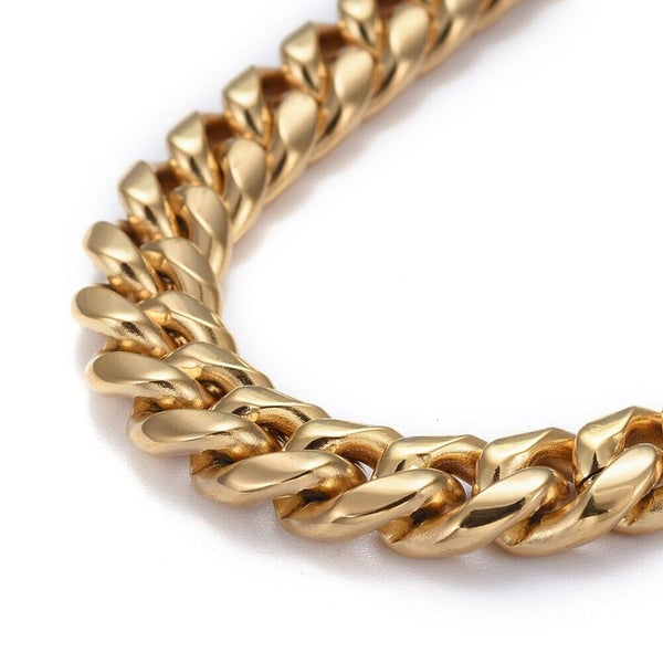 Men's Chain Stainless Steel Cuban Link Chain Bracelet Gold Silver 7-10" T25